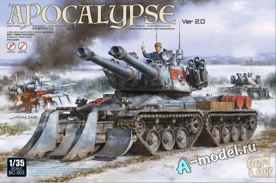 Сборная пластиковая модель танка Apocalypse Ver 2.0 в масштабе 1/35 от компании Border. В комплекте набора с моделью: пластиковые детали, инструкция, декали. Отличное схождение деталей модели и прекрасное их качество помогут получить вам удовольствие и массу положительных эмоций во время сборки. Прекрасным дополнением являются декали идущие в комплекте. Понятная инструкция с крупными рисунками облегчит в понимании моментов сборки. Мы давно сотрудничаем с этим производителем, позиция с товаром оригинальна и всегда готова для покупки. У нас всегда в наличии весь ассортимент продукции. В интернет-магазине представлен ассортимент от множества других компаний связанных с моделизмом. Акции и скидки которые часто проводятся у нас позволят вам приобрести товары нашего магазина по привлекательной цене. Вы всегда можете быстро оформить заказ. Предусмотрены несколько видов оплаты банковскими картами. Ваши заказы отправляем в любую точку России после оплаты, при доставке мы выберем минимальный по цене тариф. Внимание модель не комплектуется клеем и красками, их вы можете отдельно приобрести у нас на сайте.