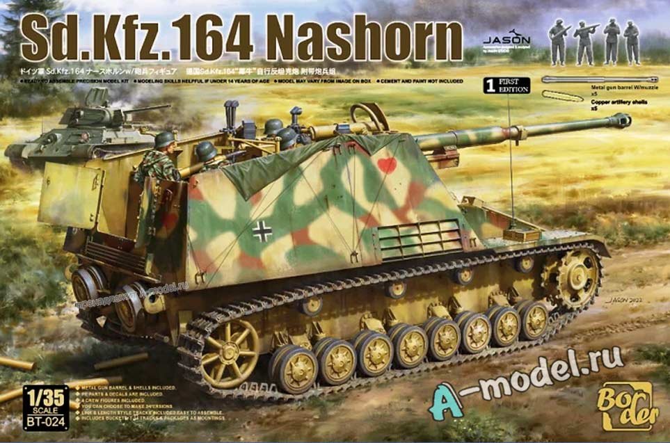 Сборная пластиковая модель истребителя танков Sd.Kfz.164 Nashorn с экипажем в масштабе 1/35 от компании Border. В комплекте набора с моделью: пластиковые детали, инструкция, декали, фототравление, металлический ствол. Отличное схождение деталей модели и прекрасное их качество помогут получить вам удовольствие и массу положительных эмоций во время сборки. Прекрасным дополнением являются декали идущие в комплекте. Понятная инструкция с крупными рисунками облегчит в понимании моментов сборки. Мы давно сотрудничаем с этим производителем, позиция с товаром оригинальна и всегда готова для покупки. У нас всегда в наличии весь ассортимент продукции. В интернет-магазине представлен ассортимент от множества других компаний связанных с моделизмом. Акции и скидки которые часто проводятся у нас позволят вам приобрести товары нашего магазина по привлекательной цене. Вы всегда можете быстро оформить заказ. Предусмотрены несколько видов оплаты банковскими картами. Ваши заказы отправляем в любую точку России после оплаты, при доставке мы выберем минимальный по цене тариф. Внимание модель не комплектуется клеем и красками, их вы можете отдельно приобрести у нас на сайте.