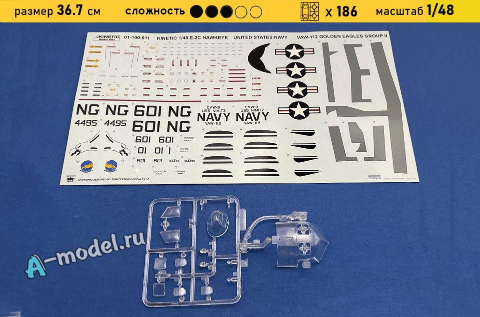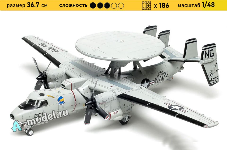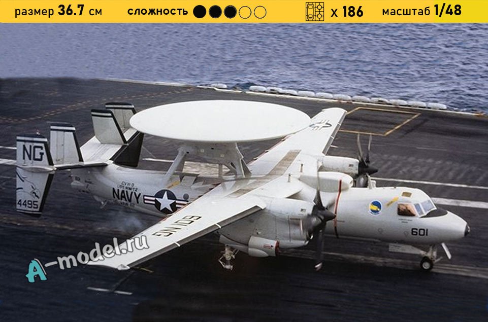 Сборная пластиковая модель палубного самолета E-2C Hawkeye в масштабе 1/48 от компании Kinetic model kits. В комплекте набора с моделью: пластиковые детали, инструкция, декали, фототравление. Отличное схождение деталей модели и прекрасное их качество помогут получить вам удовольствие и массу положительных эмоций во время сборки. Прекрасным дополнением являются декали идущие в комплекте. Понятная инструкция с крупными рисунками облегчит в понимании моментов сборки. Мы давно сотрудничаем с этим производителем, позиция с товаром оригинальна и всегда готова для покупки. У нас всегда в наличии весь ассортимент продукции. В интернет-магазине представлен ассортимент от множества других компаний связанных с моделизмом. Акции и скидки которые часто проводятся у нас позволят вам приобрести товары нашего магазина по привлекательной цене. Вы всегда можете быстро оформить заказ. Предусмотрены несколько видов оплаты банковскими картами. Ваши заказы отправляем в любую точку России после оплаты, при доставке мы выберем минимальный по цене тариф.