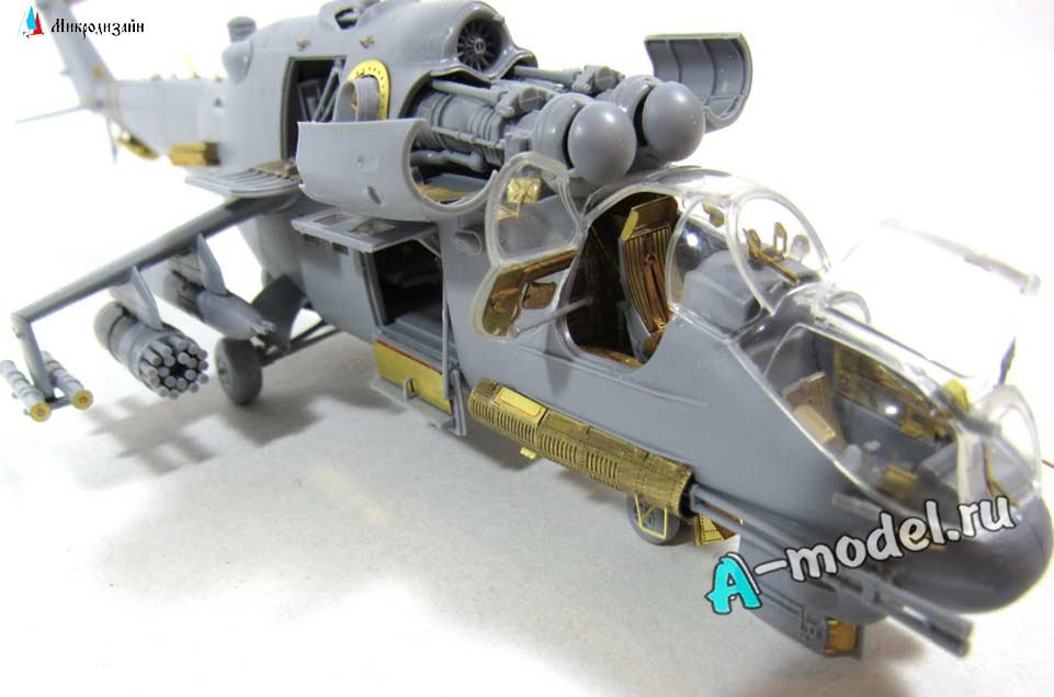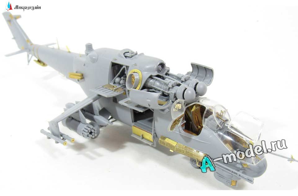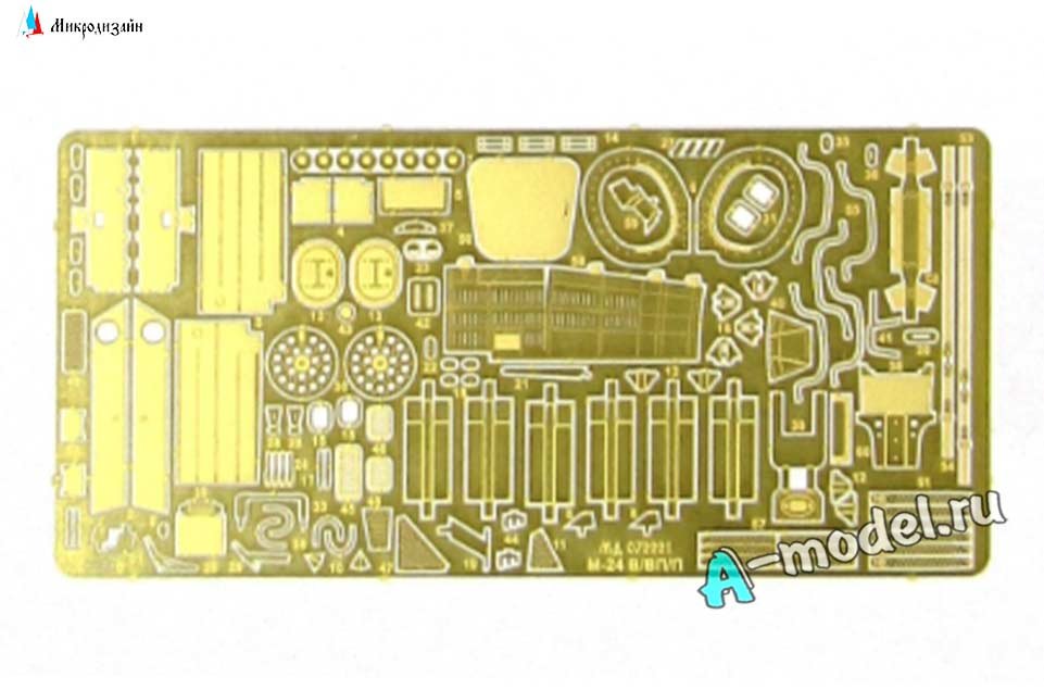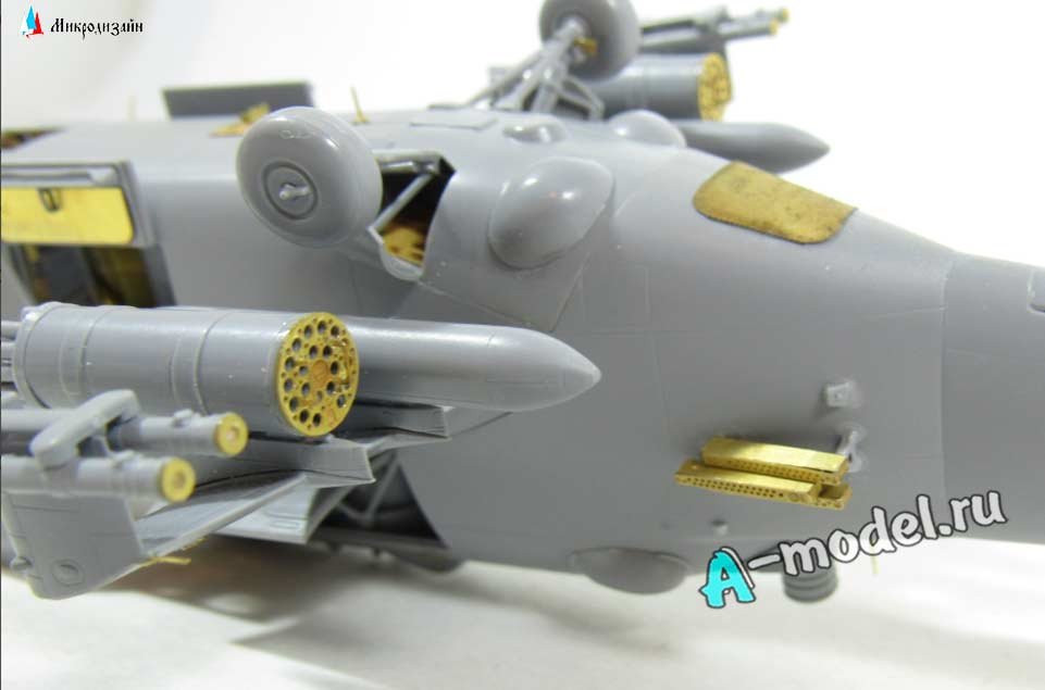 Набор от Микродизайн фототравление вертолета Ми-24В/ВП/П экстерьер в масштабе 1/72. Набор состоит из 1-й пластины фототравления, инструкцией в цветных картинках. Некоторые элементы вашей модели после применения фототравления можно сделать подвижными к примеру открывающиеся люки, кокпиты фонарей или капоты моторных отделений на автомобилях или самолетах. Количество уникальных деталей 61 штука, уровень сложности - средний. Любой большой или малый набор фототравление придаст вашей модели более респектабельный и законченный вид.