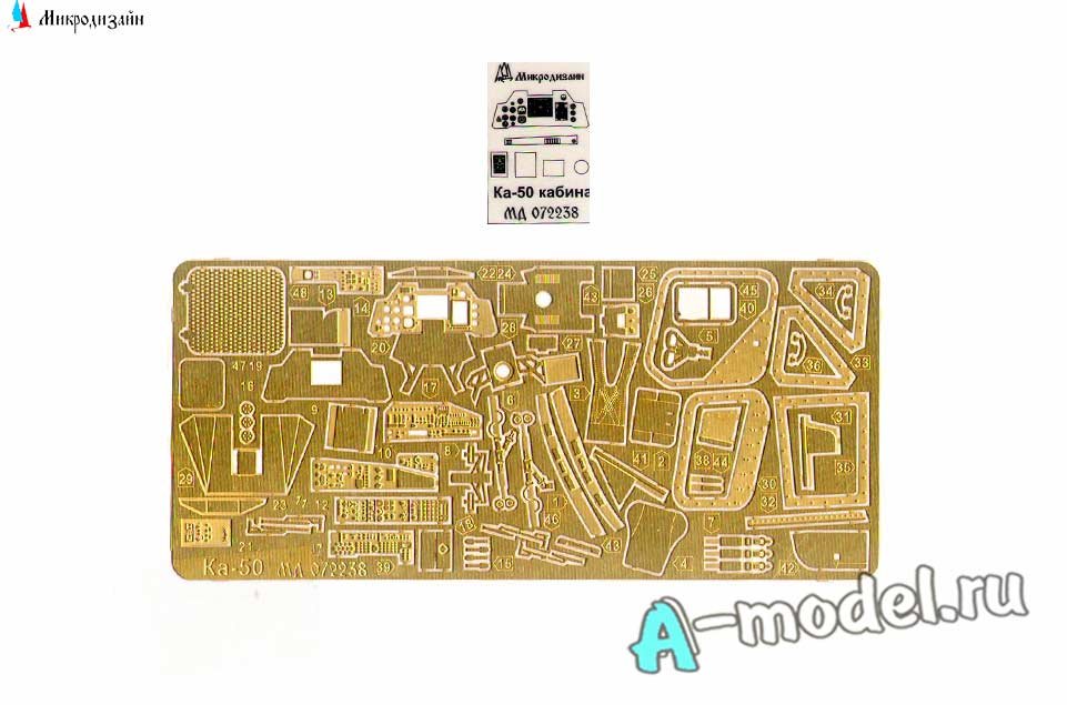 Набор фототравление от производителя Микро дизайн для сборной пластиковой модели вертолета Ка-50 интерьер кабины в масштабе 1/72. Набор состоит из фототравления, инструкцией в цветных картинках. Некоторые элементы если предусматривает набор фототравления, после применения можно сделать подвижными к примеру открывающиеся люки, кокпиты фонарей или капоты моторных отделений на автомобилях или самолетах. Уровень сложности сборки средний. Любой большой или малый набор фототравление придаст вашей модели более респектабельный и законченный вид. Совет для легкого сгибания сложной геометрии на деталях её лучше предварительно обжечь.