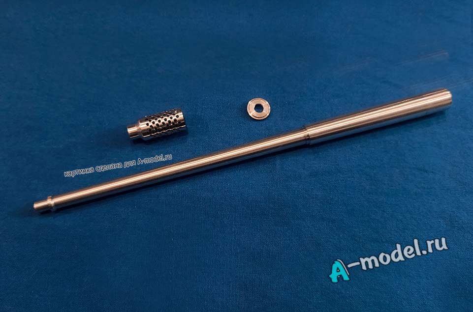 Точеный металличский ствол от производителя Model gun для сборной модели САУ Ягдпантера 2 (Jagpanther II) с пушкой Pak 80 128-мм в масштабе 1/35. Ствол из металла лучшая замена пластиковым стволам идущим в комплекте с моделью ведб пластиковый ствол нужно склеить и зачистить места склеивания иногда это получается не очень удачно и тогда приходится его шпаклевать и снова зачищать. Все эти проблемы отсутствуют на металлических стволах там нет швов соединения так как он целиковый, единственное что вас ждет это правильно приклеить его к танку с помощью цианакрилатного клея или геля. Некоторые стволы укомплектованы дульными тормозами из пластика, в тех стволах где он нужен но товар им не комплектуется нужно срезать дульный тормоз от пластикового ствола идущего в комплекте с моделью. Узнать комплектуется ли выбранный вами ствол дульным тормозом можно на картинке выбранного товара или его названии.