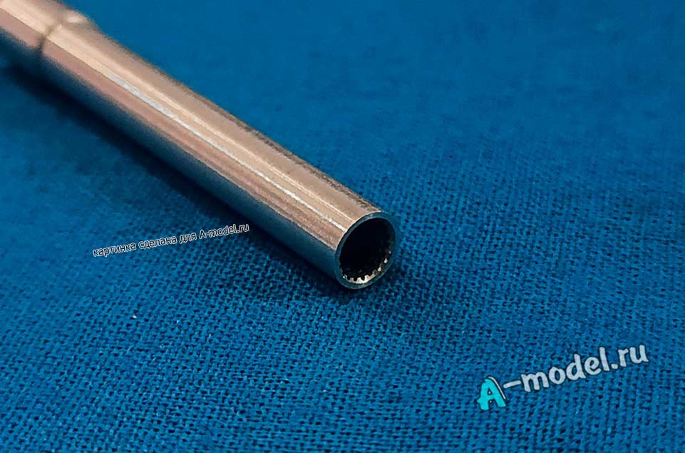 Точеный металличский ствол для пластиковой сборной модели САУ СУ-122 с пушкой М-30 от производителя Model gun в масштабе 1/35. Ствол из металла лучшая замена пластиковым стволам идущим в комплекте с моделью ведь пластиковый ствол нужно склеить и зачистить места склеивания иногда это получается не очень удачно и тогда приходится его шпаклевать и снова зачищать. Все эти проблемы отсутствуют на металлических стволах там нет швов соединения так как он целиковый, единственное что вас ждет это правильно приклеить его к танку с помощью цианакрилатного клея или геля. Некоторые стволы укомплектованы дульными тормозами из пластика, в тех стволах где он нужен но товар им не комплектуется нужно срезать дульный тормоз от пластикового ствола идущего в комплекте с моделью. Узнать комплектуется ли выбранный вами ствол дульным тормозом можно на картинке выбранного товара или его названии.
