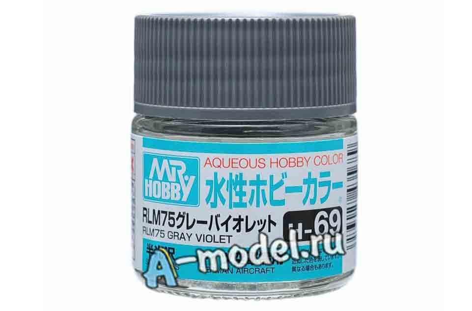 Предлагаем купить краску акриловую Mr Hobby aqueous H69 RLM75 grey (серый) по доступной цене для покраски сборных моделей техники, авиации и кораблей из пластика с помощью кисти или аэрографом. Наносить краску можно кистью и аэрографом, объем краски в 10 миллилитром из за своей насыщенности пигментом и укрывистости позволяет покрасить несколько моделей. Краска не боится морозов рассчитана на транспортировку в холодный период времени .Разбавлять краску можно фирменным разбавителем или водой, даже после разбавления водой краска очень быстро высыхает. Мы напрямую работаем с поставщиком красок поэтому краски всегда в наличии. Вы можете быстро оформить заказ и оплатить легким и удобным способом с помощью пластиковых кредитных карт. Гарантируем доставку быстрым и безопасным способом по всей территории России