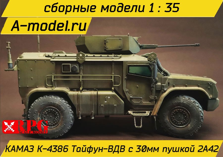 Сборная пластиковая модель Тайфун ВДВ K-4386 с 30 мм пушкой 2А42 в масштабе 1/35 от компании RPG model. В комплекте набора с моделью: пластиковые детали, инструкция, фототравление, декали. Отличное схождение деталей модели и прекрасное их качество помогут получить вам удовольствие и массу положительных эмоций во время сборки. Прекрасным дополнением являются декали идущие в комплекте. Понятная инструкция с крупными рисунками облегчит в понимании моментов сборки. Мы давно сотрудничаем с этим производителем, позиция с товаром оригинальна и всегда готова для покупки. У нас всегда в наличии весь ассортимент продукции. В интернет-магазине представлен ассортимент от множества других компаний связанных с моделизмом. Акции и скидки которые часто проводятся у нас позволят вам приобрести товары нашего магазина по привлекательной цене. Вы всегда можете быстро оформить заказ. Предусмотрены несколько видов оплаты банковскими картами. Ваши заказы отправляем в любую точку России после оплаты, при доставке мы выберем минимальный по цене тариф. Внимание модель не комплектуется клеем и красками, их вы можете отдельно приобрести у нас на сайте.