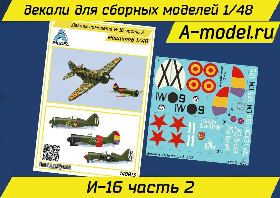 Декаль самолета И-16 часть 1 Производитель: A-model Масштаб: 1/48 Артикул: 148012 декали для моделей |
