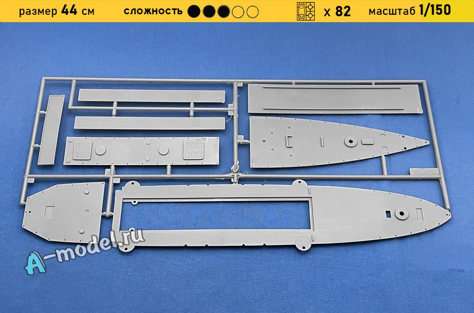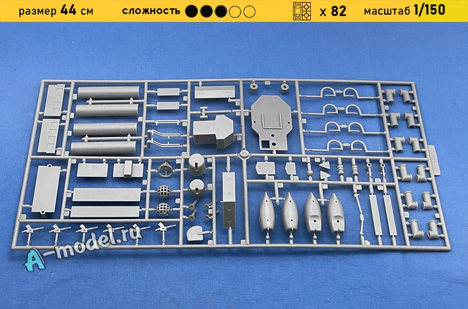 Сборная пластиковая модель эсминца Zhong Shan Jian в масштабе 1/150 от компании A-model. В комплекте набора с моделью: пластиковые детали, инструкция, декали. Отличное схождение деталей модели и прекрасное их качество помогут получить вам удовольствие и массу положительных эмоций во время сборки. Прекрасным дополнением являются декали идущие в комплекте. Понятная инструкция с крупными рисунками облегчит в понимании моментов сборки. Мы давно сотрудничаем с этим производителем, позиция с товаром оригинальна и всегда готова для покупки. У нас всегда в наличии весь ассортимент продукции. В интернет-магазине представлен ассортимент от множества других компаний связанных с моделизмом. Акции и скидки которые часто проводятся у нас позволят вам приобрести товары нашего магазина по привлекательной цене. Вы всегда можете быстро оформить заказ. Предусмотрены несколько видов оплаты банковскими картами. Ваши заказы отправляем в любую точку России после оплаты, при доставке мы выберем минимальный по цене тариф. Внимание модель не комплектуется клеем и красками, их вы можете отдельно приобрести у нас на сайте.
