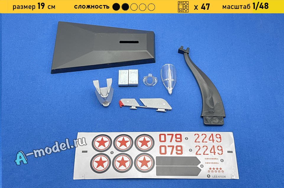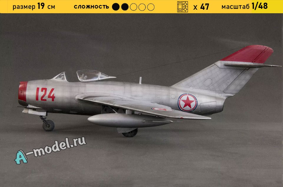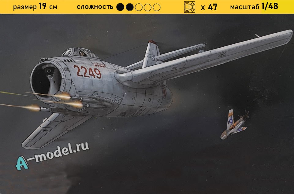 Сборная пластиковая модель истребителя М-15 в масштабе 1/48 от компании A-model. В комплекте набора с моделью: пластиковые детали, инструкция, декали. Отличное схождение деталей модели и прекрасное их качество помогут получить вам удовольствие и массу положительных эмоций во время сборки. Прекрасным дополнением являются декали идущие в комплекте. Понятная инструкция с крупными рисунками облегчит в понимании моментов сборки. Мы давно сотрудничаем с этим производителем, позиция с товаром оригинальна и всегда готова для покупки. У нас всегда в наличии весь ассортимент продукции. В интернет-магазине представлен ассортимент от множества других компаний связанных с моделизмом. Акции и скидки которые часто проводятся у нас позволят вам приобрести товары нашего магазина по привлекательной цене. Вы всегда можете быстро оформить заказ. Предусмотрены несколько видов оплаты банковскими картами. Ваши заказы отправляем в любую точку России после оплаты, при доставке мы выберем минимальный по цене тариф. Внимание модель не комплектуется клеем и красками, их вы можете отдельно приобрести у нас на сайте.