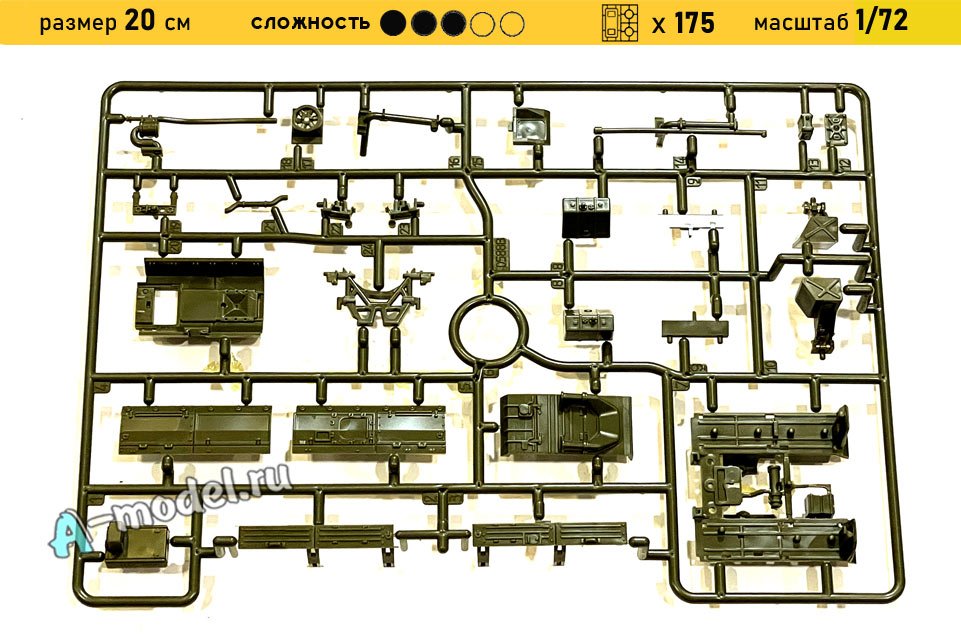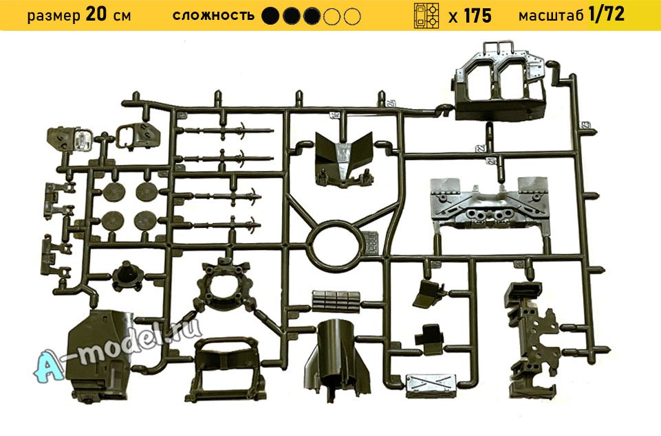 Сборная пластиковая модель СКАД балистический комплекс с ракетой Р-17 в масштабе 1/72 от компании A-model. В комплекте набора с моделью: пластиковые детали, инструкция. Отличное схождение деталей модели и прекрасное их качество помогут получить вам удовольствие и массу положительных эмоций во время сборки. Прекрасным дополнением являются декали идущие в комплекте. Понятная инструкция с крупными рисунками облегчит в понимании моментов сборки. Мы давно сотрудничаем с этим производителем, позиция с товаром оригинальна и всегда готова для покупки. У нас всегда в наличии весь ассортимент продукции. В интернет-магазине представлен ассортимент от множества других компаний связанных с моделизмом. Акции и скидки которые часто проводятся у нас позволят вам приобрести товары нашего магазина по привлекательной цене. Вы всегда можете быстро оформить заказ. Предусмотрены несколько видов оплаты банковскими картами. Ваши заказы отправляем в любую точку России после оплаты, при доставке мы выберем минимальный по цене тариф. Внимание модель не комплектуется клеем и красками, их вы можете отдельно приобрести у нас на сайте.