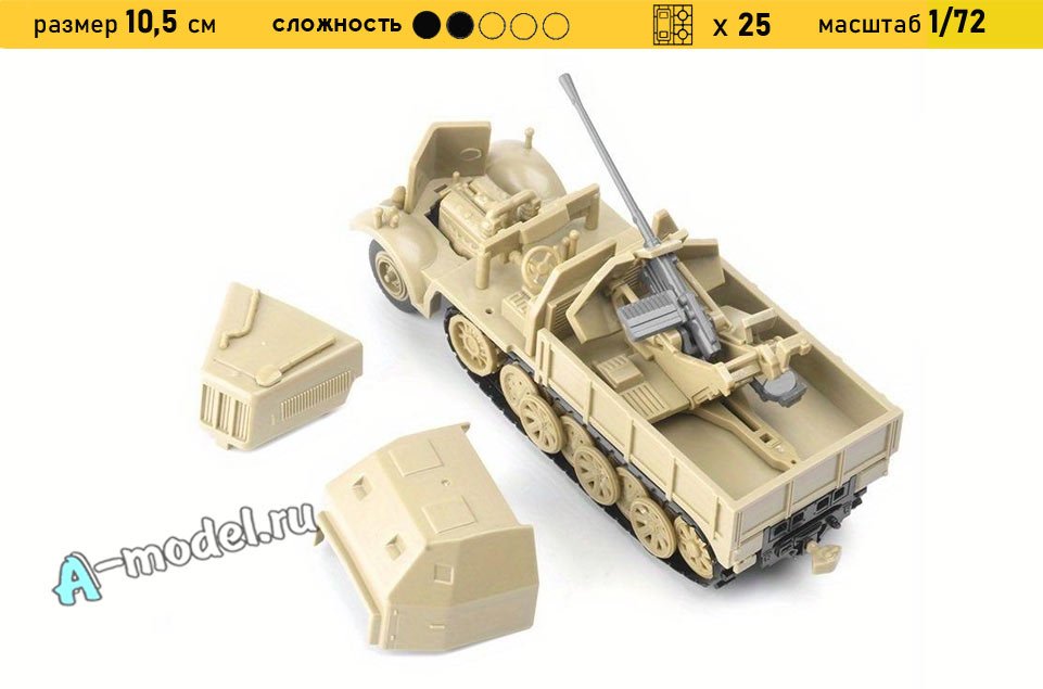 Сборная пластиковая модель Sd Kfz 7/2 с зенитным орудием flag 37 в масштабе 1/72 от компании A-model. В комплекте набора с моделью: пластиковые детали, инструкция. Отличное схождение деталей модели и прекрасное их качество помогут получить вам удовольствие и массу положительных эмоций во время сборки. Прекрасным дополнением являются декали идущие в комплекте. Понятная инструкция с крупными рисунками облегчит в понимании моментов сборки. Мы давно сотрудничаем с этим производителем, позиция с товаром оригинальна и всегда готова для покупки. У нас всегда в наличии весь ассортимент продукции. В интернет-магазине представлен ассортимент от множества других компаний связанных с моделизмом. Акции и скидки которые часто проводятся у нас позволят вам приобрести товары нашего магазина по привлекательной цене. Вы всегда можете быстро оформить заказ. Предусмотрены несколько видов оплаты банковскими картами. Ваши заказы отправляем в любую точку России после оплаты, при доставке мы выберем минимальный по цене тариф. Внимание модель не комплектуется клеем и красками, их вы можете отдельно приобрести у нас на сайте.