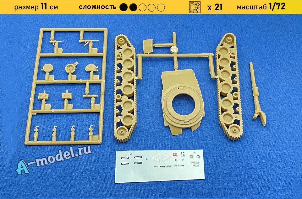 Сборная пластиковая модель танка Меркава мк 2 в масштабе 1/72 от компании A-model. В комплекте набора с моделью: пластиковые детали, инструкция, декали. Отличное схождение деталей модели и прекрасное их качество помогут получить вам удовольствие и массу положительных эмоций во время сборки. Прекрасным дополнением являются декали идущие в комплекте. Понятная инструкция с крупными рисунками облегчит в понимании моментов сборки. Мы давно сотрудничаем с этим производителем, позиция с товаром оригинальна и всегда готова для покупки. У нас всегда в наличии весь ассортимент продукции. В интернет-магазине представлен ассортимент от множества других компаний связанных с моделизмом. Акции и скидки которые часто проводятся у нас позволят вам приобрести товары нашего магазина по привлекательной цене. Вы всегда можете быстро оформить заказ. Предусмотрены несколько видов оплаты банковскими картами. Ваши заказы отправляем в любую точку России после оплаты, при доставке мы выберем минимальный по цене тариф. Внимание модель не комплектуется клеем и красками, их вы можете отдельно приобрести у нас на сайте.