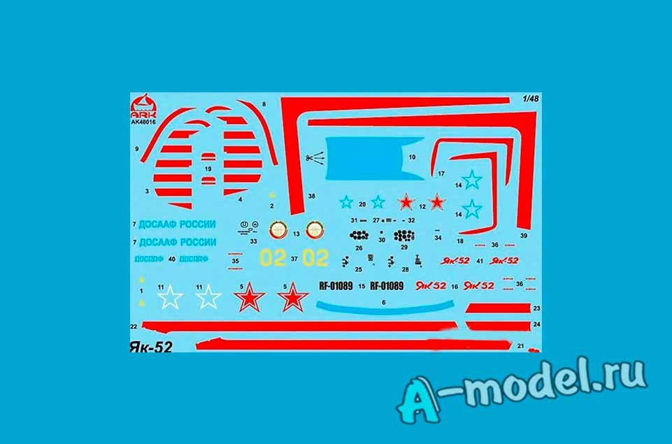 Самолет Як-*52 ОКБ Яковлева ДОСААФ России Производитель: ARK models Масштаб: 1/48 Артикул: 48016-ARKmodels сборная модель |