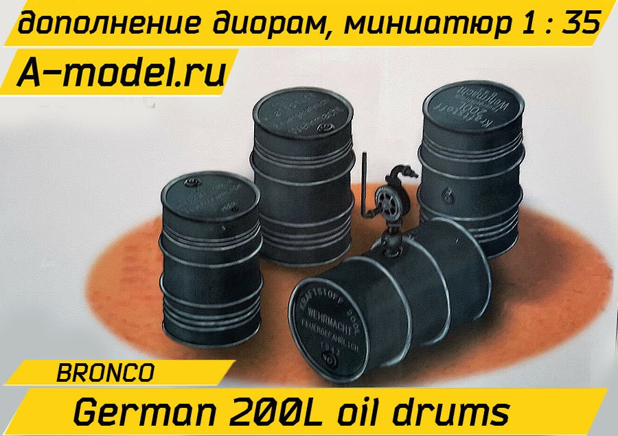 Сборная пластиковая модель немецких бочек 200л в масштабе 1/35 от компании Bronco models. В комплекте набора с моделью: пластиковые детали, инструкция. Отличное схождение деталей модели и прекрасное их качество помогут получить вам удовольствие и массу положительных эмоций во время сборки. Понятная инструкция с крупными рисунками облегчит в понимании моментов сборки. Мы давно сотрудничаем с этим производителем, позиция с товаром оригинальна и всегда готова для покупки. У нас всегда в наличии весь ассортимент продукции. В интернет-магазине представлен ассортимент от множества других компаний связанных с моделизмом. Акции и скидки которые часто проводятся у нас позволят вам приобрести товары нашего магазина по привлекательной цене. Вы всегда можете быстро оформить заказ. Предусмотрены несколько видов оплаты банковскими картами. Ваши заказы отправляем в любую точку России после оплаты, при доставке мы выберем минимальный по цене тариф.