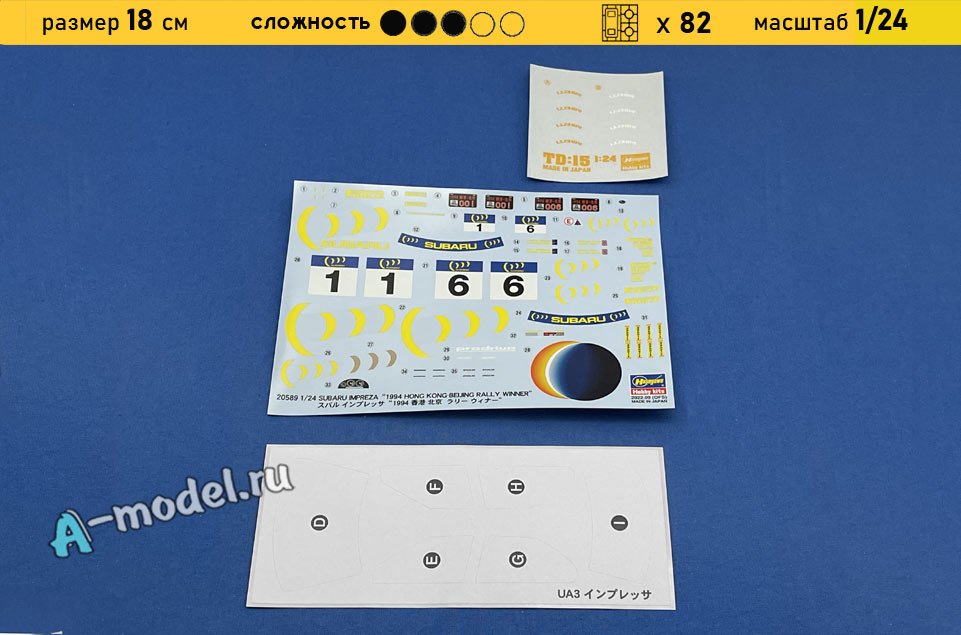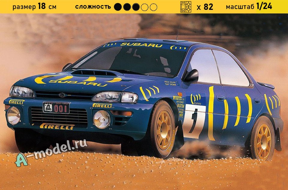 Сборная пластиковая модель автомобиля SUBARU IMPREZA HONG KONG-BEIJING RALLY 1994 в масштабе 1/24 от компании Hasegawa. В комплекте набора с моделью: пластиковые детали, инструкция, декали. Отличное схождение деталей модели и прекрасное их качество помогут получить вам удовольствие и массу положительных эмоций во время сборки. Прекрасным дополнением являются декали идущие в комплекте. Понятная инструкция с крупными рисунками облегчит в понимании моментов сборки. Мы давно сотрудничаем с этим производителем, позиция с товаром оригинальна и всегда готова для покупки. У нас всегда в наличии весь ассортимент продукции. В интернет-магазине представлен ассортимент от множества других компаний связанных с моделизмом. Акции и скидки которые часто проводятся у нас позволят вам приобрести товары нашего магазина по привлекательной цене. Вы всегда можете быстро оформить заказ. Предусмотрены несколько видов оплаты банковскими картами. Ваши заказы отправляем в любую точку России после оплаты, при доставке мы выберем минимальный по цене тариф. Внимание модель не комплектуется клеем и красками, их вы можете отдельно приобрести у нас на сайте.