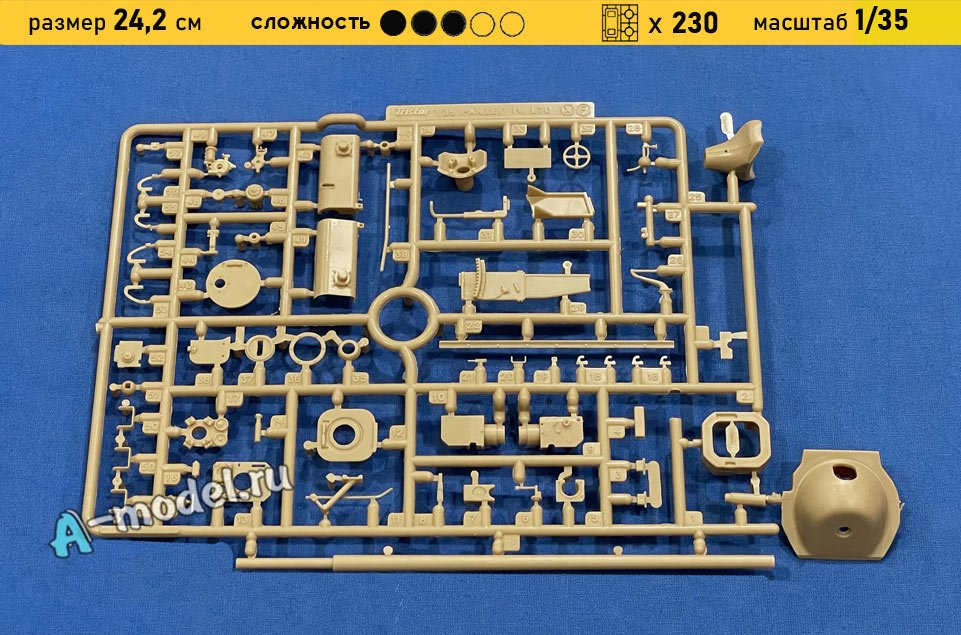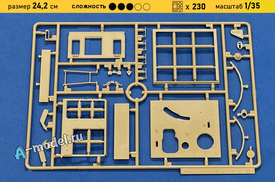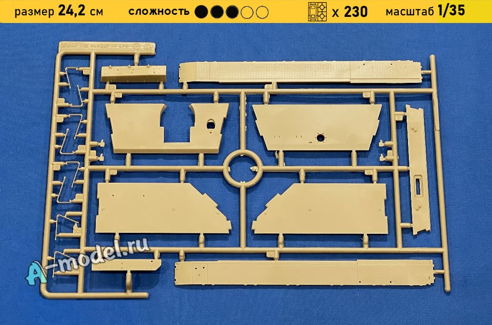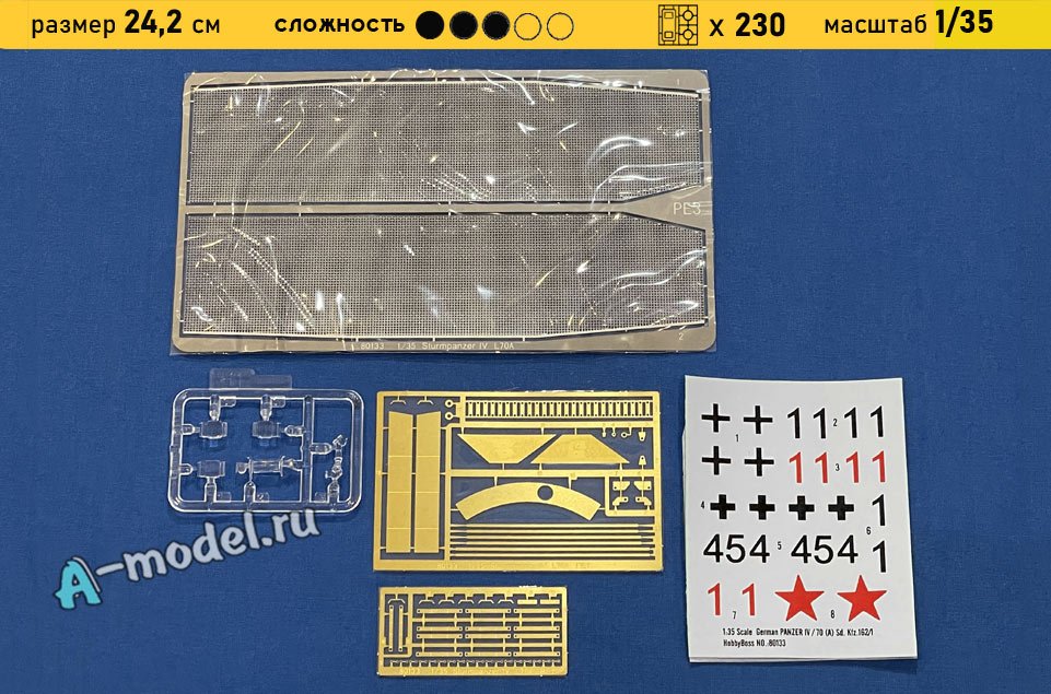 Сборная пластиковая модель PANZER IV / 70 Sd. Kfz.162/1 в масштабе 1/35 от компании Hobby Boss. В комплекте набора с моделью: пластиковые детали, инструкция, декали. Отличное схождение деталей модели и прекрасное их качество помогут получить вам удовольствие и массу положительных эмоций во время сборки. Прекрасным дополнением являются декали идущие в комплекте. Понятная инструкция с крупными рисунками облегчит в понимании моментов сборки. Мы давно сотрудничаем с этим производителем, позиция с товаром оригинальна и всегда готова для покупки. У нас всегда в наличии весь ассортимент продукции. В интернет-магазине представлен ассортимент от множества других компаний связанных с моделизмом. Акции и скидки которые часто проводятся у нас позволят вам приобрести товары нашего магазина по привлекательной цене. Вы всегда можете быстро оформить заказ. Предусмотрены несколько видов оплаты банковскими картами. Ваши заказы отправляем в любую точку России после оплаты, при доставке мы выберем минимальный по цене тариф. Внимание модель не комплектуется клеем и красками, их вы можете отдельно приобрести у нас на сайте.