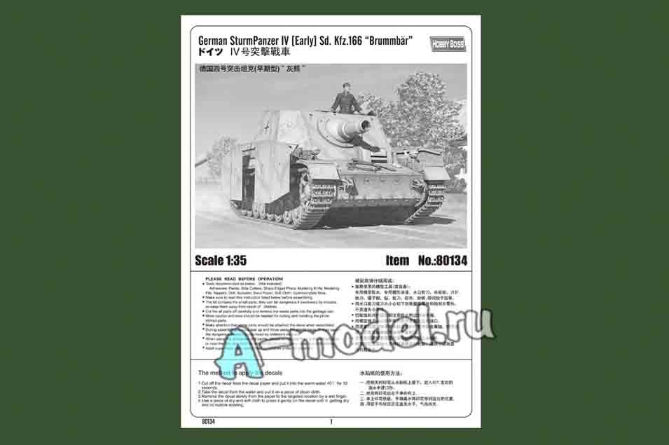 Сборная модель German SturmPanzer IV early Sd. Kfz.166 "Brummbar" 1/35 Hobby boss артикул 80134