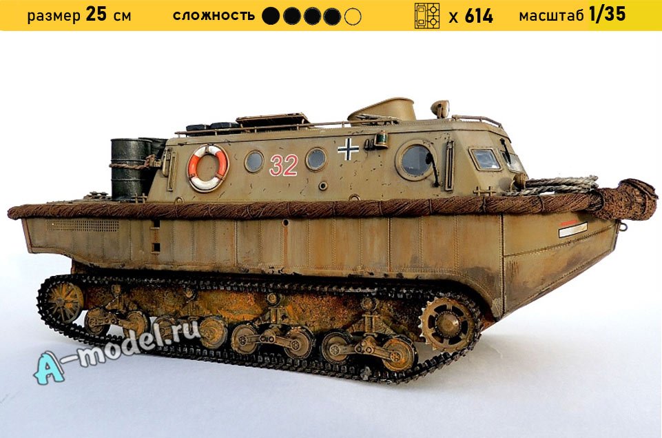 Сборная пластиковая модель немецкого тягача-амфибии LWS (средний выпуск) в масштабе 1/35 от компании Hobby Boss. В комплекте набора с моделью: пластиковые детали, инструкция, декали, фототравление. Отличное схождение деталей модели и прекрасное их качество помогут получить вам удовольствие и массу положительных эмоций во время сборки. Прекрасным дополнением являются декали идущие в комплекте. Понятная инструкция с крупными рисунками облегчит в понимании моментов сборки. Мы давно сотрудничаем с этим производителем, позиция с товаром оригинальна и всегда готова для покупки. У нас всегда в наличии весь ассортимент продукции. В интернет-магазине представлен ассортимент от множества других компаний связанных с моделизмом. Акции и скидки которые часто проводятся у нас позволят вам приобрести товары нашего магазина по привлекательной цене. Вы всегда можете быстро оформить заказ. Предусмотрены несколько видов оплаты банковскими картами. Ваши заказы отправляем в любую точку России после оплаты, при доставке мы выберем минимальный по цене тариф. Внимание модель не комплектуется клеем и красками, их вы можете отдельно приобрести у нас на сайте.