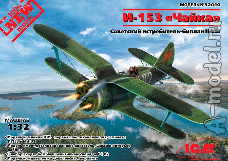 Сборная пластиковая модель советского истребителя И-153 Чайка в масштабе 1/32 от компании ICM. В комплекте набора с моделью: пластиковые детали, инструкция, декали. Отличное схождение деталей модели и прекрасное их качество помогут получить вам удовольствие и массу положительных эмоций во время сборки. Прекрасным дополнением являются декали идущие в комплекте. Понятная инструкция с крупными рисунками облегчит в понимании моментов сборки. Мы давно сотрудничаем с этим производителем, позиция с товаром оригинальна и всегда готова для покупки. У нас всегда в наличии весь ассортимент продукции. В интернет-магазине представлен ассортимент от множества других компаний связанных с моделизмом. Акции и скидки которые часто проводятся у нас позволят вам приобрести товары нашего магазина по привлекательной цене. Вы всегда можете быстро оформить заказ. Предусмотрены несколько видов оплаты банковскими картами. Ваши заказы отправляем в любую точку России после оплаты, при доставке мы выберем минимальный по цене тариф.