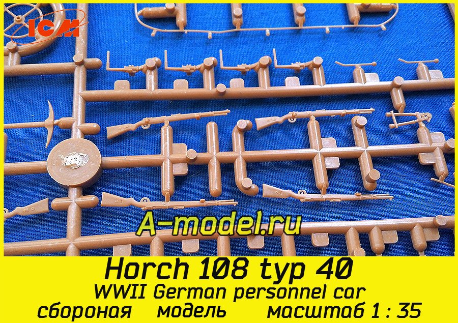 Сборная пластиковая модель внедорожника Horch 108 typ 40 в масштабе 1/35 от компании ICM. В комплекте набора с моделью: пластиковые детали, инструкция, декали, резиновые шины. Отличное схождение деталей модели и прекрасное их качество помогут получить вам удовольствие и массу положительных эмоций во время сборки. Прекрасным дополнением являются декали идущие в комплекте. Понятная инструкция с крупными рисунками облегчит в понимании моментов сборки. Мы давно сотрудничаем с этим производителем, позиция с товаром оригинальна и всегда готова для покупки. У нас всегда в наличии весь ассортимент продукции. В интернет-магазине представлен ассортимент от множества других компаний связанных с моделизмом. Акции и скидки которые часто проводятся у нас позволят вам приобрести товары нашего магазина по привлекательной цене. Вы всегда можете быстро оформить заказ. Предусмотрены несколько видов оплаты банковскими картами. Ваши заказы отправляем в любую точку России после оплаты, при доставке мы выберем минимальный по цене тариф.