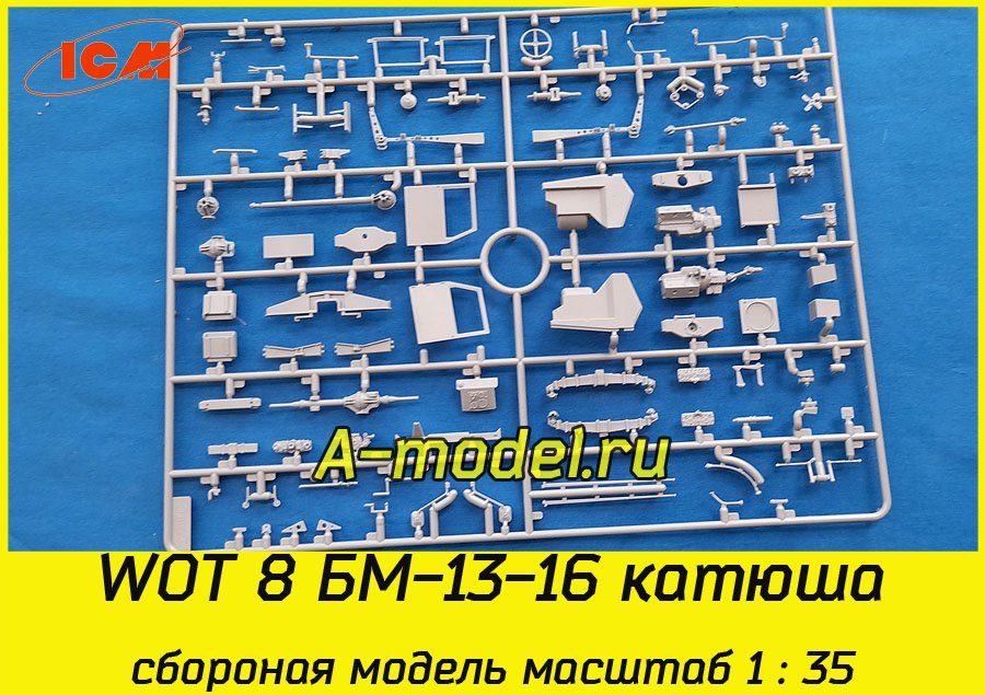Сборная пластиковая модель боевой машины WOT 8 БМ-13-16 катюша в масштабе 1/35 от компании ICM. В комплекте набора с моделью: пластиковые детали, инструкция фототравление, резиновые шины. Отличное схождение деталей модели и прекрасное их качество помогут получить вам удовольствие и массу положительных эмоций во время сборки. Понятная инструкция с крупными рисунками облегчит в понимании моментов сборки. Мы давно сотрудничаем с этим производителем, позиция с товаром оригинальна и всегда готова для покупки. У нас всегда в наличии весь ассортимент продукции. В интернет-магазине представлен ассортимент от множества других компаний связанных с моделизмом. Акции и скидки которые часто проводятся у нас позволят вам приобрести товары нашего магазина по привлекательной цене. Вы всегда можете быстро оформить заказ. Предусмотрены несколько видов оплаты банковскими картами. Ваши заказы отправляем в любую точку России после оплаты, при доставке мы выберем минимальный по цене тариф.