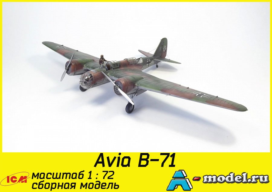 Сборная пластиковая модель бомбардировщика Avia B-71 в масштабе 1/72 от компании ICM. В комплекте набора с моделью: пластиковые детали, инструкция, деколи. Отличное схождение деталей модели и прекрасное их качество помогут получить вам удовольствие и массу положительных эмоций во время сборки. Прекрасным дополнением являются декали идущие в комплекте. Понятная инструкция с крупными рисунками облегчит в понимании моментов сборки. Мы давно сотрудничаем с этим производителем, позиция с товаром оригинальна и всегда готова для покупки. У нас всегда в наличии весь ассортимент продукции. В интернет-магазине представлен ассортимент от множества других компаний связанных с моделизмом. Акции и скидки которые часто проводятся у нас позволят вам приобрести товары нашего магазина по привлекательной цене. Вы всегда можете быстро оформить заказ. Предусмотрены несколько видов оплаты банковскими картами. Ваши заказы отправляем в любую точку России после оплаты, при доставке мы выберем минимальный по цене тариф.