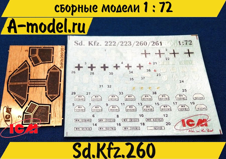 Сборная пластиковая модель бронеавтомобиля радиосвязи Sd.Kfz 260 в масштабе 1/72 от компании ICM. В комплекте набора с моделью: пластиковые детали, инструкция, декали, фототравление. Отличное схождение деталей модели и прекрасное их качество помогут получить вам удовольствие и массу положительных эмоций во время сборки. Прекрасным дополнением являются декали идущие в комплекте. Понятная инструкция с крупными рисунками облегчит в понимании моментов сборки. Мы давно сотрудничаем с этим производителем, позиция с товаром оригинальна и всегда готова для покупки. У нас всегда в наличии весь ассортимент продукции. В интернет-магазине представлен ассортимент от множества других компаний связанных с моделизмом. Акции и скидки которые часто проводятся у нас позволят вам приобрести товары нашего магазина по привлекательной цене. Вы всегда можете быстро оформить заказ. Предусмотрены несколько видов оплаты банковскими картами. Ваши заказы отправляем в любую точку России после оплаты, при доставке мы выберем минимальный по цене тариф.