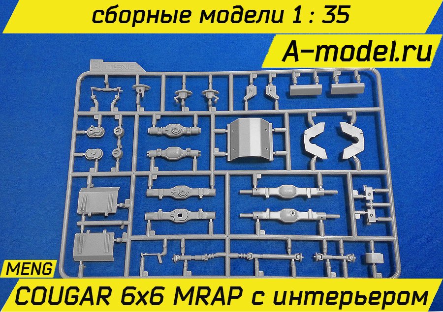 Китайской компанией Meng Model создан набор SS-005 для сборки миниатюрной копии бронированного американского автомобиля Cougar 6х6 MRAP. Благодаря тщательной проработке деталей и процесс сборки принесет массу удовольствия при любом уровне опыта. В собранном виде миниатюрная копия автомобиля имеет длину 226 и ширину 79 мм. В комплект сборной модели Meng 1:35 входит: