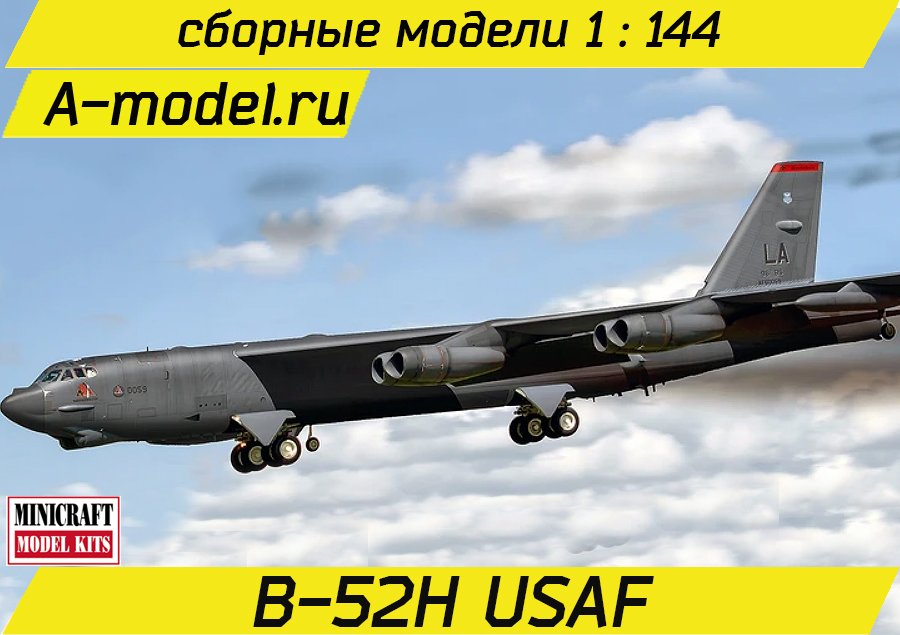 На этой странице Вы сможете купить сборную модель самолета B-52 H USAF в масштабе 1/144 от производителя Minicraft. Мы давно работаем с фирмой Minicraft поэтому, модель с артикулом 14641 всегда оригинальна и готова для покупки. Предусмотрено несколько видов оплаты банковскими картами и доставка по всей территории России и ближайшего зарубежья.