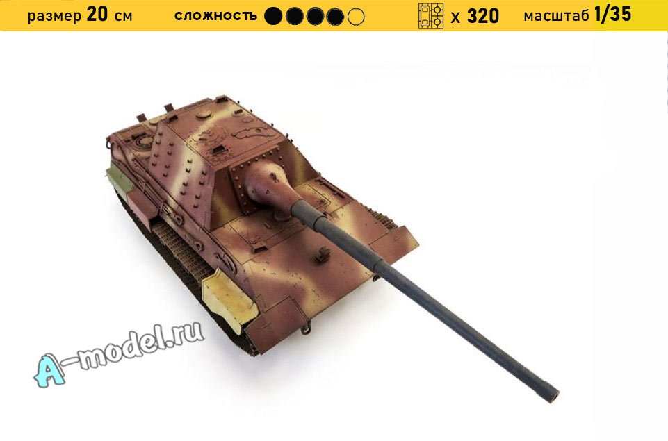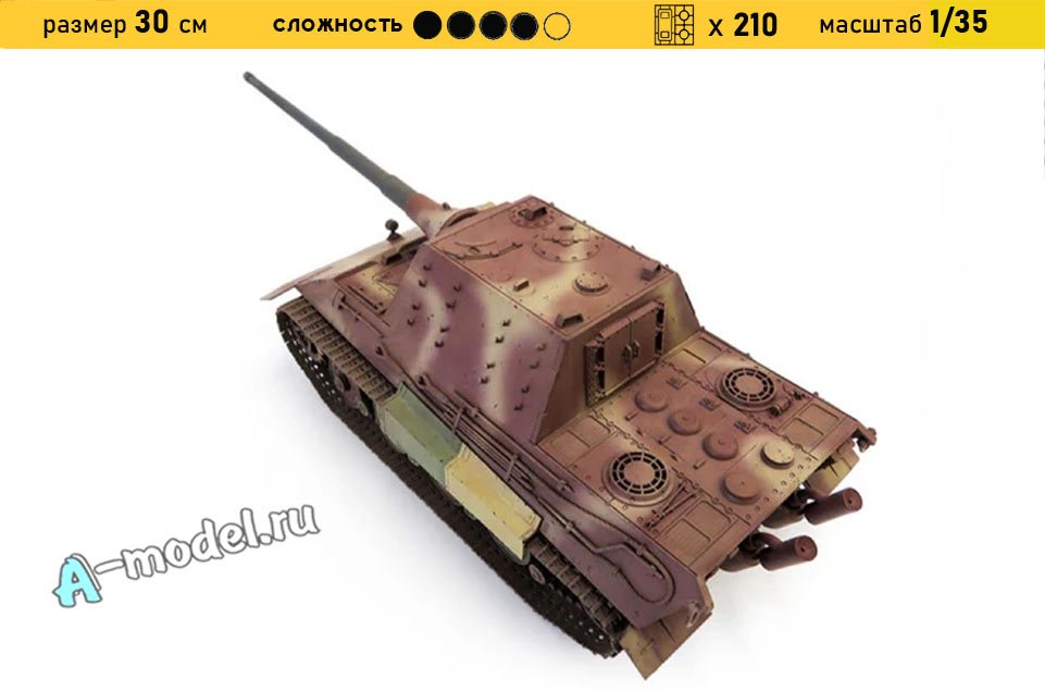 Сборная пластиковая модель немецкого немецкого САУ E-75 jagdtiger II с пушкой 128-мм в масштабе 1/35 от компании Modelcollect. В комплекте набора с моделью: пластиковые детали, инструкция, декали, фототравление. Отличное схождение деталей модели и прекрасное их качество помогут получить вам удовольствие и массу положительных эмоций во время сборки. Прекрасным дополнением являются декали идущие в комплекте. Понятная инструкция с крупными рисунками облегчит в понимании моментов сборки. Мы давно сотрудничаем с этим производителем, позиция с товаром оригинальна и всегда готова для покупки. У нас всегда в наличии весь ассортимент продукции. В интернет-магазине представлен ассортимент от множества других компаний связанных с моделизмом. Акции и скидки которые часто проводятся у нас позволят вам приобрести товары нашего магазина по привлекательной цене. Вы всегда можете быстро оформить заказ. Предусмотрены несколько видов оплаты банковскими картами. Ваши заказы отправляем в любую точку России после оплаты, при доставке мы выберем минимальный по цене тариф. Внимание модель не комплектуется клеем и красками, их вы можете отдельно приобрести у нас на сайте.