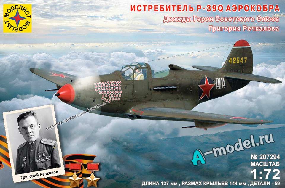 Сборная пластиковая модель самолета истребителя P-39Q Аэрокобра асса Григория Речкалова в масштабе 1/72 от компании Моделист. В комплекте набора с моделью: пластиковые детали, инструкция, декали. Отличное схождение деталей модели и прекрасное их качество помогут получить вам удовольствие и массу положительных эмоций во время сборки. Прекрасным дополнением являются декали идущие в комплекте. Понятная инструкция с крупными рисунками облегчит в понимании моментов сборки. Мы давно сотрудничаем с этим производителем, позиция с товаром оригинальна и всегда готова для покупки. У нас всегда в наличии весь ассортимент продукции. В интернет-магазине представлен ассортимент от множества других компаний связанных с моделизмом. Акции и скидки которые часто проводятся у нас позволят вам приобрести товары нашего магазина по привлекательной цене. Вы всегда можете быстро оформить заказ. Предусмотрены несколько видов оплаты банковскими картами. Ваши заказы отправляем в любую точку России после оплаты, при доставке мы выберем минимальный по цене тариф.