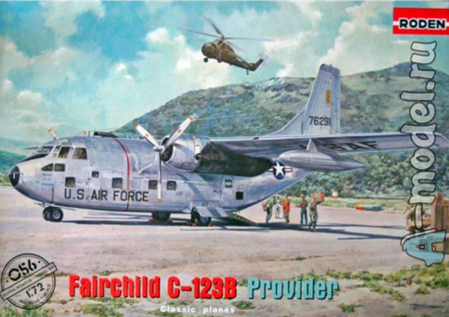 Roden 1/72 C-123B Fairchild provider. Американский транспортный самолет времен Вьетнамской войны, прославился большой грузоподъемностью и малым разбегом при взлете что важно на ограниченных пространствах окруженных горами или джунглями. Эту прекрасную модель в отличном исполнении вы можете купить в нашем магазине. Мы давно работаем с производителем RODEN, поэтому позиция с артикулом 056 оригинальна и всегда готова для заказа. Несколько видов оплаты банковскими картами и доставка в любую точку России курьером или почтой.