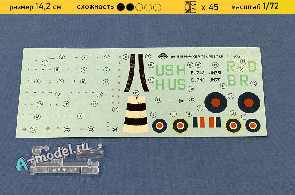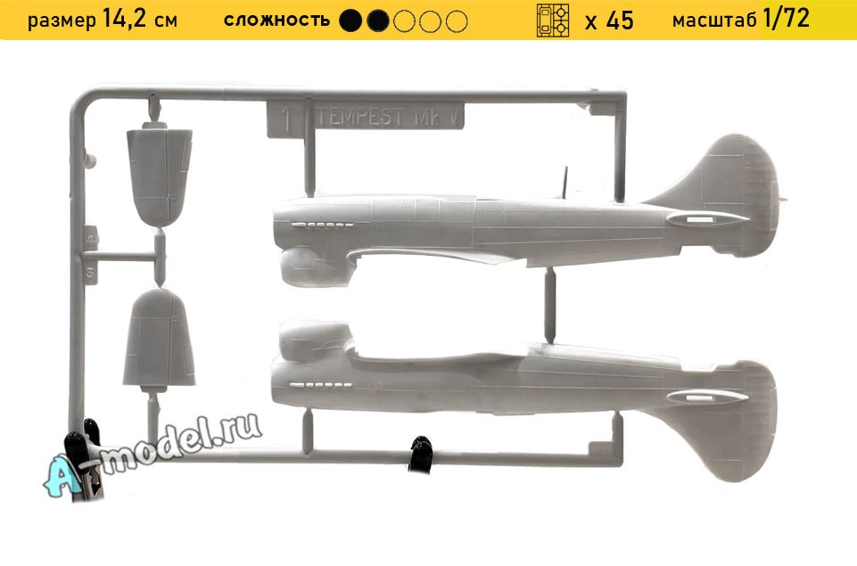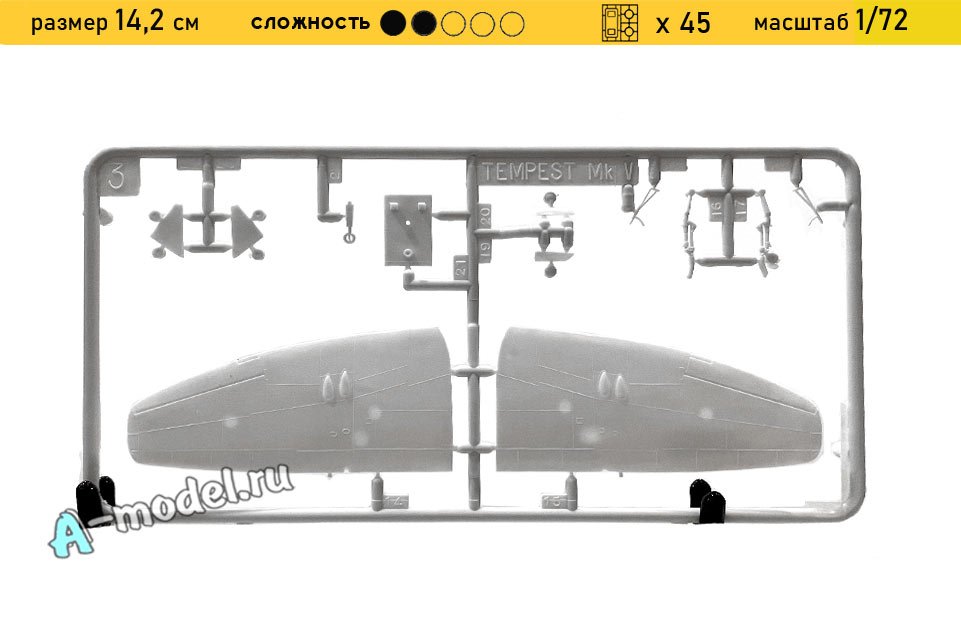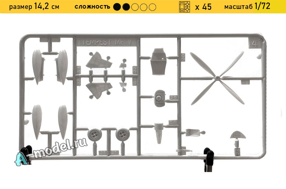 Сборная пластиковая модель истребителя Tempest Mk.V в масштабе 1/72 от компании SMER. В комплекте набора с моделью: пластиковые детали, инструкция, декали. Отличное схождение деталей модели и прекрасное их качество помогут получить вам удовольствие и массу положительных эмоций во время сборки. Прекрасным дополнением являются декали идущие в комплекте. Понятная инструкция с крупными рисунками облегчит в понимании моментов сборки. Мы давно сотрудничаем с этим производителем, позиция с товаром оригинальна и всегда готова для покупки. У нас всегда в наличии весь ассортимент продукции. В интернет-магазине представлен ассортимент от множества других компаний связанных с моделизмом. Акции и скидки которые часто проводятся у нас позволят вам приобрести товары нашего магазина по привлекательной цене. Вы всегда можете быстро оформить заказ. Предусмотрены несколько видов оплаты банковскими картами. Ваши заказы отправляем в любую точку России после оплаты, при доставке мы выберем минимальный по цене тариф. Внимание модель не комплектуется клеем и красками, их вы можете отдельно приобрести у нас на сайте.