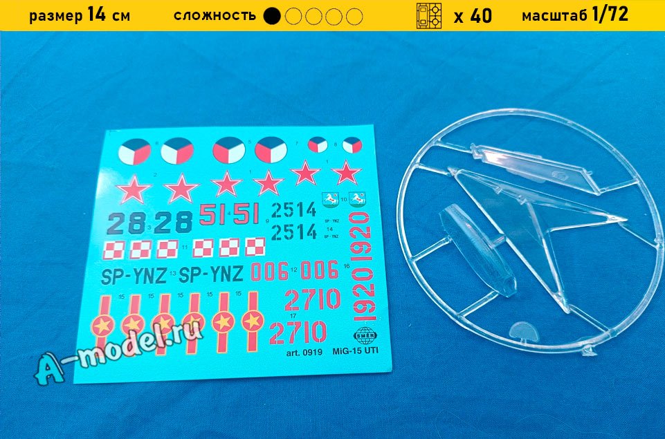 Сборная пластиковая модель истребителя МиГ-15УТИ в масштабе 1/72 от чешской компании SMER. В комплекте набора с моделью: пластиковые детали, инструкция, декали. Отличное схождение деталей модели и прекрасное их качество помогут получить вам удовольствие и массу положительных эмоций во время сборки. Прекрасным дополнением являются декали идущие в комплекте. Понятная инструкция с крупными рисунками облегчит в понимании моментов сборки. Мы давно сотрудничаем с этим производителем, позиция с товаром оригинальна и всегда готова для покупки. У нас всегда в наличии весь ассортимент продукции. В интернет-магазине представлен ассортимент от множества других компаний связанных с моделизмом. Акции и скидки которые часто проводятся у нас позволят вам приобрести товары нашего магазина по привлекательной цене. Вы всегда можете быстро оформить заказ. Предусмотрены несколько видов оплаты банковскими картами. Ваши заказы отправляем в любую точку России после оплаты, при доставке мы выберем минимальный по цене