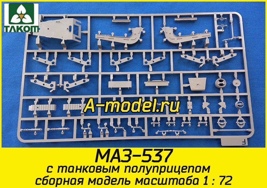 Сборная пластиковая модель тягача МАЗ-537 с полуприцепом 5247 в масштабе 1/72 от компании TAKOM. В комплекте набора с моделью: пластиковые детали, инструкция, деколи, фототравление, резиновые шины. Отличное схождение деталей модели и прекрасное их качество помогут получить вам удовольствие и массу положительных эмоций во время сборки. Прекрасным дополнением являются декали идущие в комплекте. Понятная инструкция с крупными рисунками облегчит в понимании моментов сборки. Мы давно сотрудничаем с этим производителем, позиция с товаром оригинальна и всегда готова для покупки. У нас всегда в наличии весь ассортимент продукции. В интернет-магазине представлен ассортимент от множества других компаний связанных с моделизмом. Акции и скидки которые часто проводятся у нас позволят вам приобрести товары нашего магазина по привлекательной цене. Вы всегда можете быстро оформить заказ. Предусмотрены несколько видов оплаты банковскими картами. Ваши заказы отправляем в любую точку России после оплаты, при доставке мы выберем минимальный по цене тариф.