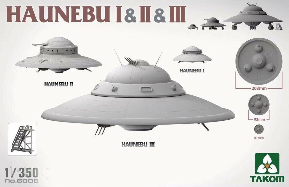 Комплектация 3-х сборных моделей немецких летающих тарелок HAUNEBU I & II & III TAKOM
