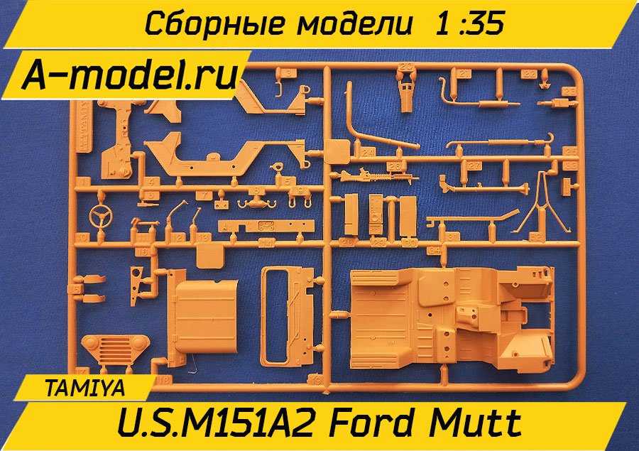 Сборная пластиковая модель автомобиля повышенной проходимости US M151A2 Ford MuttUS M151A2 Ford Mutt в масштабе 1/35 от компании Tamiya. В комплекте набора с моделью: пластиковые детали, инструкция, декали. Отличное схождение деталей модели и прекрасное их качество помогут получить вам удовольствие и массу положительных эмоций во время сборки. Прекрасным дополнением являются декали идущие в комплекте. Понятная инструкция с крупными рисунками облегчит в понимании моментов сборки. Мы давно сотрудничаем с этим производителем, позиция с товаром оригинальна и всегда готова для покупки. У нас всегда в наличии весь ассортимент продукции. В интернет-магазине представлен ассортимент от множества других компаний связанных с моделизмом. Акции и скидки которые часто проводятся у нас позволят вам приобрести товары нашего магазина по привлекательной цене. Вы всегда можете быстро оформить заказ. Предусмотрены несколько видов оплаты банковскими картами. Ваши заказы отправляем в любую точку России после оплаты, при доставке мы выберем минимальный по цене тариф.