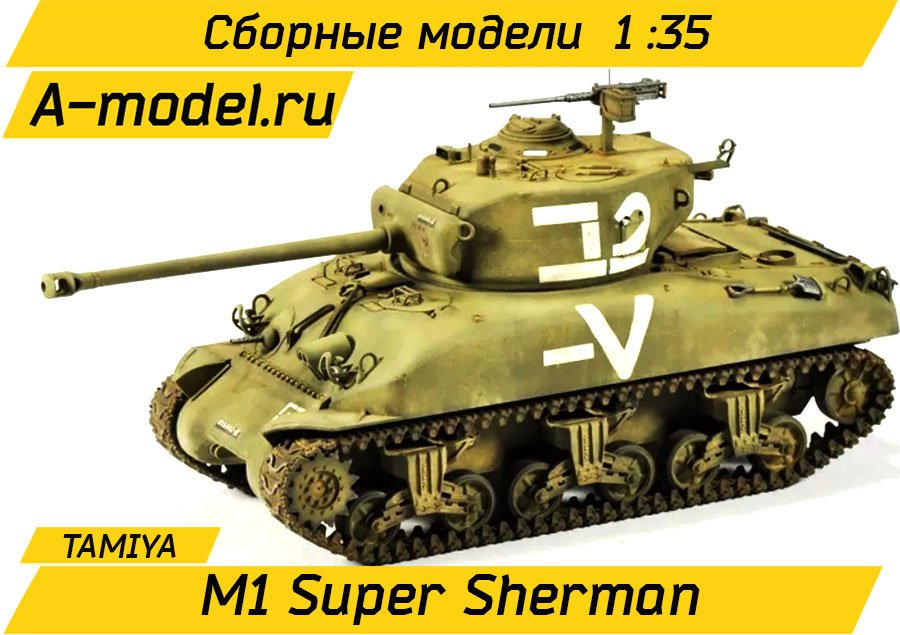 Сборная пластиковая модель танка М1 Super Sherman в масштабе 1/35 от компании Tamiya. В комплекте набора с моделью: пластиковые детали, инструкция, декали. Отличное схождение деталей модели и прекрасное их качество помогут получить вам удовольствие и массу положительных эмоций во время сборки. Прекрасным дополнением являются декали идущие в комплекте. Понятная инструкция с крупными рисунками облегчит в понимании моментов сборки. Мы давно сотрудничаем с этим производителем, позиция с товаром оригинальна и всегда готова для покупки. У нас всегда в наличии весь ассортимент продукции. В интернет-магазине представлен ассортимент от множества других компаний связанных с моделизмом. Акции и скидки которые часто проводятся у нас позволят вам приобрести товары нашего магазина по привлекательной цене. Вы всегда можете быстро оформить заказ. Предусмотрены несколько видов оплаты банковскими картами. Ваши заказы отправляем в любую точку России после оплаты, при доставке мы выберем минимальный по цене тариф.