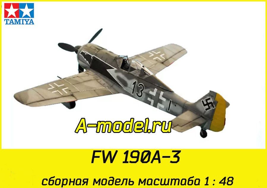 Сборная пластиковая модель истребителя Fw190A-3 в масштабе 1/48 от компании Tamiya. В комплекте набора с моделью: пластиковые детали, инструкция, декали. Отличное схождение деталей модели и прекрасное их качество помогут получить вам удовольствие и массу положительных эмоций во время сборки. Прекрасным дополнением являются декали идущие в комплекте. Понятная инструкция с крупными рисунками облегчит в понимании моментов сборки. Мы давно сотрудничаем с этим производителем, позиция с товаром оригинальна и всегда готова для покупки. У нас всегда в наличии весь ассортимент продукции. В интернет-магазине представлен ассортимент от множества других компаний связанных с моделизмом. Акции и скидки которые часто проводятся у нас позволят вам приобрести товары нашего магазина по привлекательной цене. Вы всегда можете быстро оформить заказ. Предусмотрены несколько видов оплаты банковскими картами. Ваши заказы отправляем в любую точку России после оплаты, при доставке мы выберем минимальный по цене тариф.