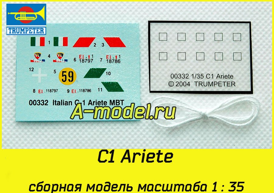 Сборная пластиковая модель танка C1 Ariete в масштабе 1/35 от компании Trumpeter. В комплекте набора с моделью: пластиковые детали, инструкция, декали. Отличное схождение деталей модели и прекрасное их качество помогут получить вам удовольствие и массу положительных эмоций во время сборки. Прекрасным дополнением являются декали идущие в комплекте. Понятная инструкция с крупными рисунками облегчит в понимании моментов сборки. Мы давно сотрудничаем с этим производителем, позиция с товаром оригинальна и всегда готова для покупки. У нас всегда в наличии весь ассортимент продукции. В интернет-магазине представлен ассортимент от множества других компаний связанных с моделизмом. Акции и скидки которые часто проводятся у нас позволят вам приобрести товары нашего магазина по привлекательной цене. Вы всегда можете быстро оформить заказ. Предусмотрены несколько видов оплаты банковскими картами. Ваши заказы отправляем в любую точку России после оплаты, при доставке мы выберем минимальный по цене тариф.