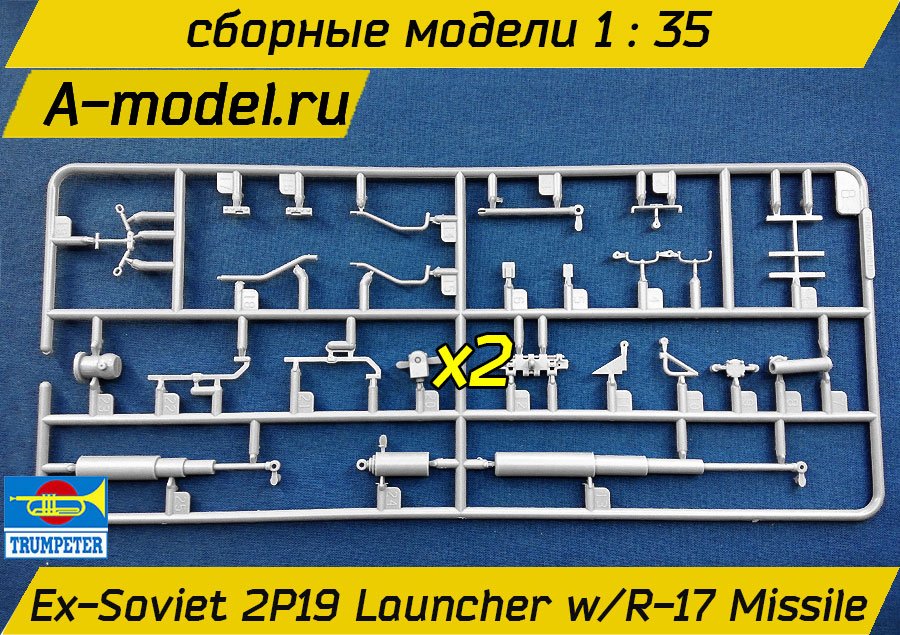Модель, для сборки которой потребуется более 750 деталей, отличается превосходной детализацией. У машины длиной 366 и шириной 101 мм проработан интерьер. В наборе 01024 в 1:35 масштабе от Trumpeter для создания самоходной ПУ 2П19 с Р-17: