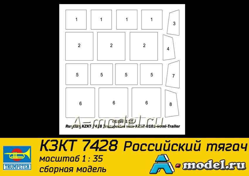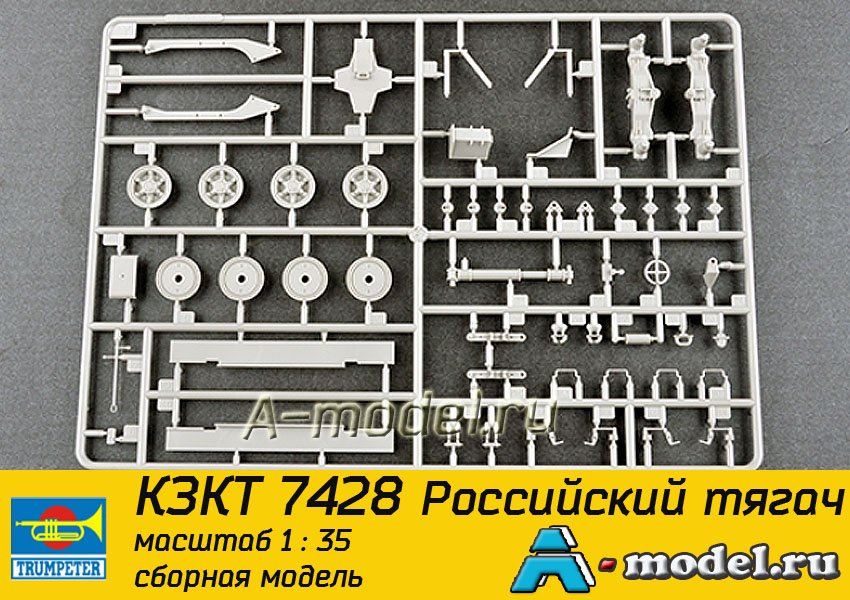 На этой странице Вы сможете найти и купить сборную модель КЗКТ 7428 танковый тягача с полуприцепом от фирмы Trumpeter масштаба 1/35 доступной цене. Мы давно работаем с производителем Трумпетер, поэтому позиция с артикулом 01039 оригинальна и всегда готова для заказа. Несколько видов оплаты банковскими картами и доставка в любую точку России курьером или почтой.