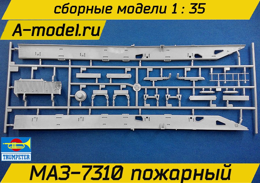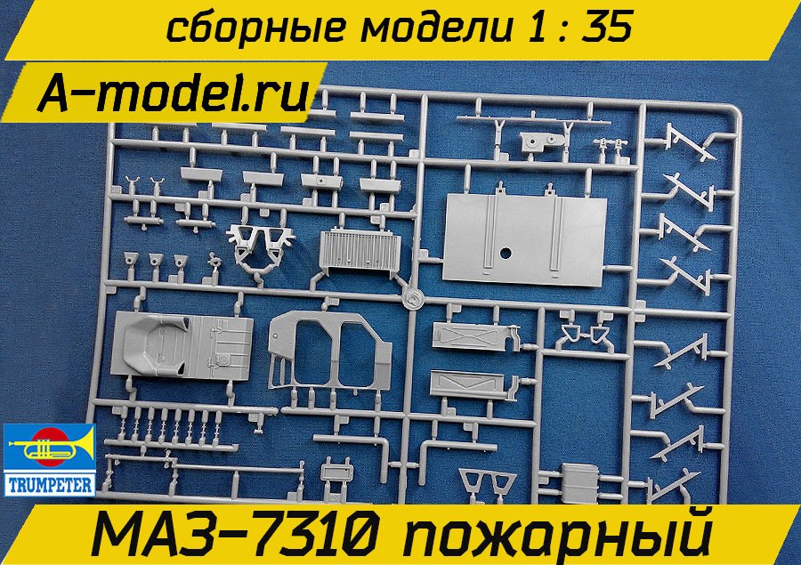 Сборная пластиковая модель тягача МАЗ-7310 пожарный в масштабе 1/35 от компании Trumpeter. В комплекте набора с моделью: пластиковые детали, инструкция, декали, фототравление, резиновые шины. Отличное схождение деталей модели и прекрасное их качество помогут получить вам удовольствие и массу положительных эмоций во время сборки. Прекрасным дополнением являются декали идущие в комплекте. Понятная инструкция с крупными рисунками облегчит в понимании моментов сборки. Мы давно сотрудничаем с этим производителем, позиция с товаром оригинальна и всегда готова для покупки. У нас всегда в наличии весь ассортимент продукции. В интернет-магазине представлен ассортимент от множества других компаний связанных с моделизмом. Акции и скидки которые часто проводятся у нас позволят вам приобрести товары нашего магазина по привлекательной цене. Вы всегда можете быстро оформить заказ. Предусмотрены несколько видов оплаты банковскими картами. Ваши заказы отправляем в любую точку России после оплаты, при доставке мы выберем минимальный по цене тариф.