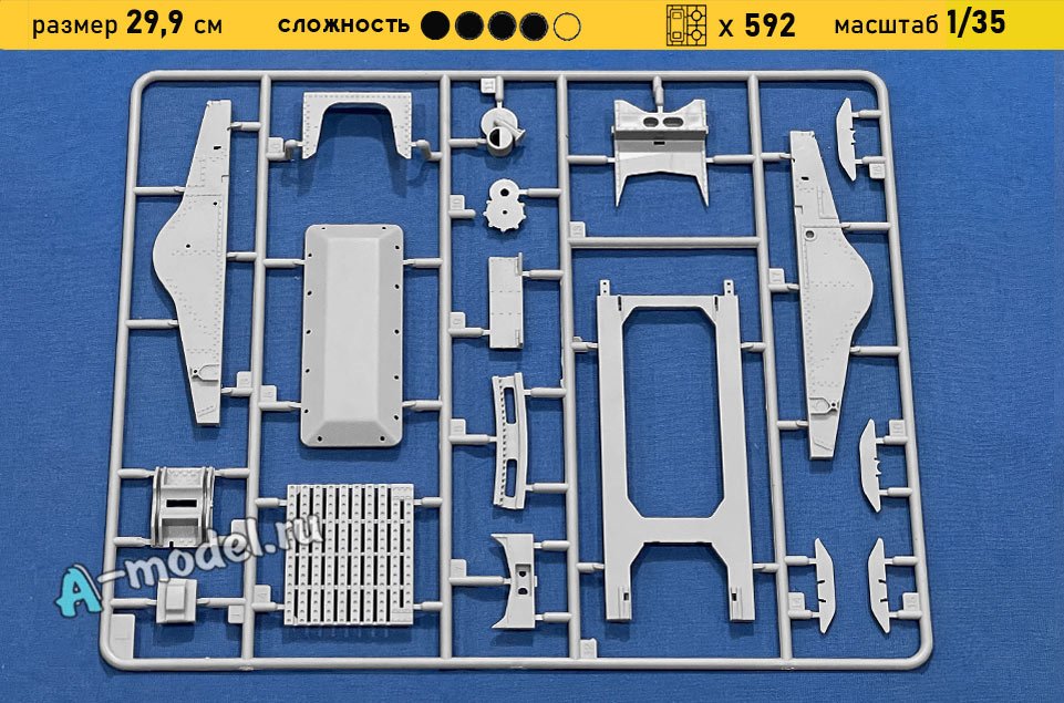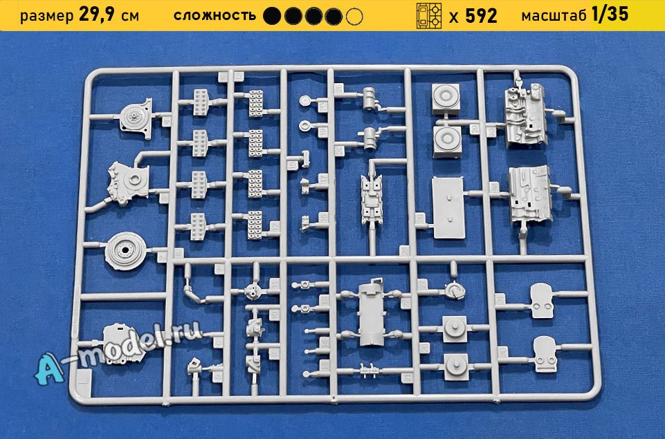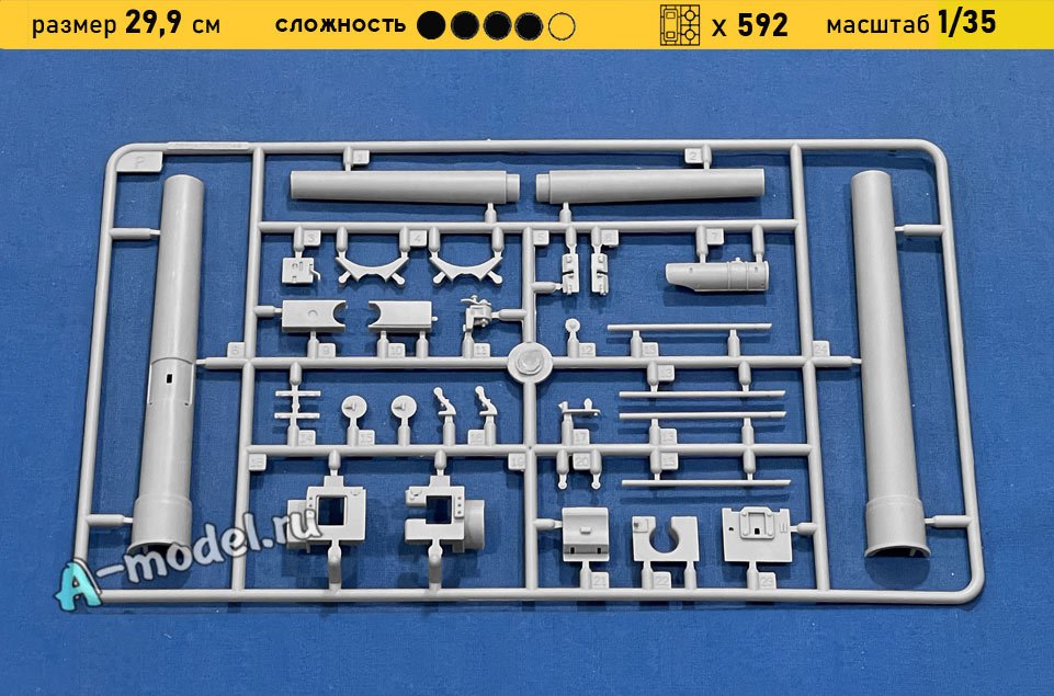 Сборная пластиковая модель Geschutzwagen Tiger Grille21/210mm Mortar 18/1 L/31 в масштабе 1/35 от компании Trumpeter. В комплекте набора с моделью: пластиковые детали, инструкция, декали, фототравление. Отличное схождение деталей модели и прекрасное их качество помогут получить вам удовольствие и массу положительных эмоций во время сборки. Прекрасным дополнением являются декали идущие в комплекте. Понятная инструкция с крупными рисунками облегчит в понимании моментов сборки. Мы давно сотрудничаем с этим производителем, позиция с товаром оригинальна и всегда готова для покупки. У нас всегда в наличии весь ассортимент продукции. В интернет-магазине представлен ассортимент от множества других компаний связанных с моделизмом. Акции и скидки которые часто проводятся у нас позволят вам приобрести товары нашего магазина по привлекательной цене. Вы всегда можете быстро оформить заказ. Предусмотрены несколько видов оплаты банковскими картами. Ваши заказы отправляем в любую точку России после оплаты, при доставке мы выберем минимальный по цене тариф. Внимание модель не комплектуется клеем и красками, их вы можете отдельно приобрести у нас на сайте.