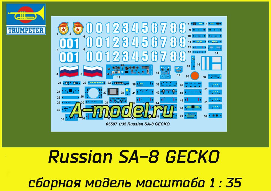 Комплектация сборной модели ЗРК Оса 9К33М3 code NATO SA-8 GECKO Trumpeter 05597