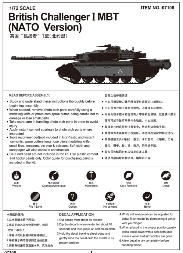 Комплектация сборной модели танка Challenger I (Челленджер 1)от Trumpeter