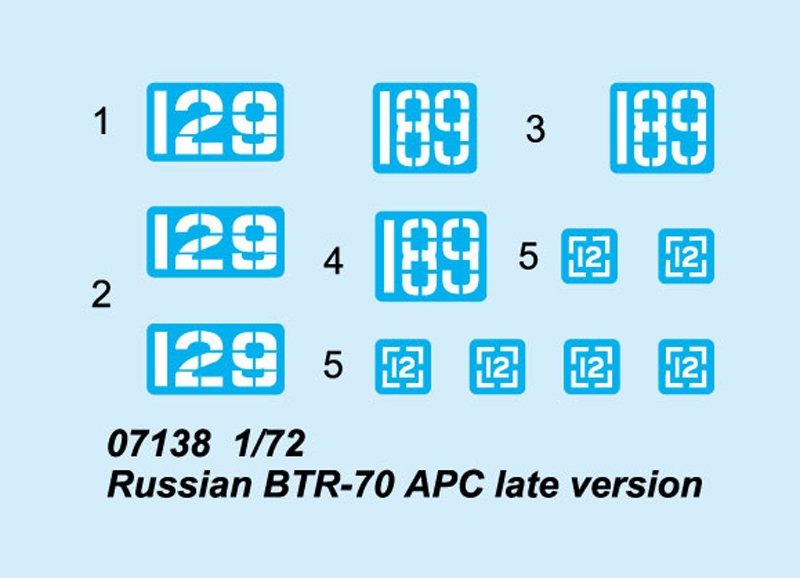Комплектация сборной модели БТР-70 поздний Trumpeter 07138