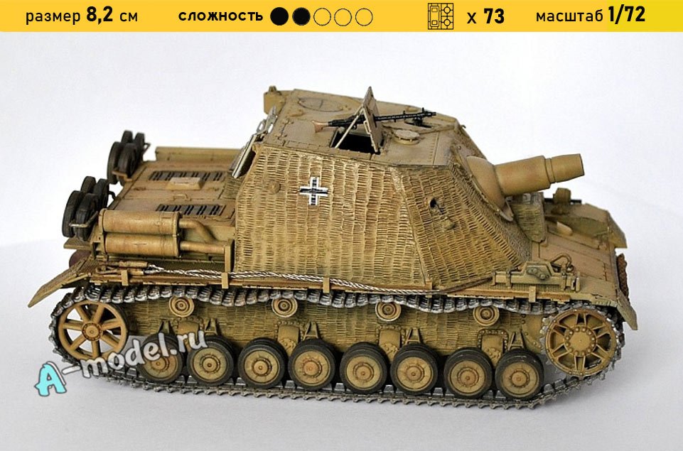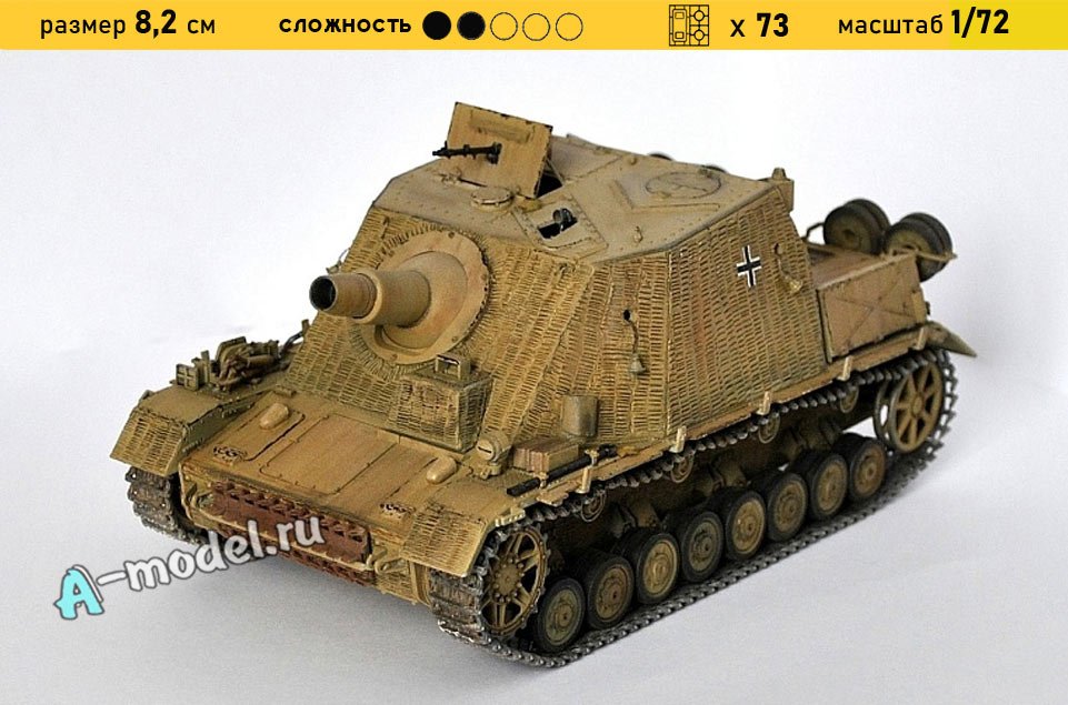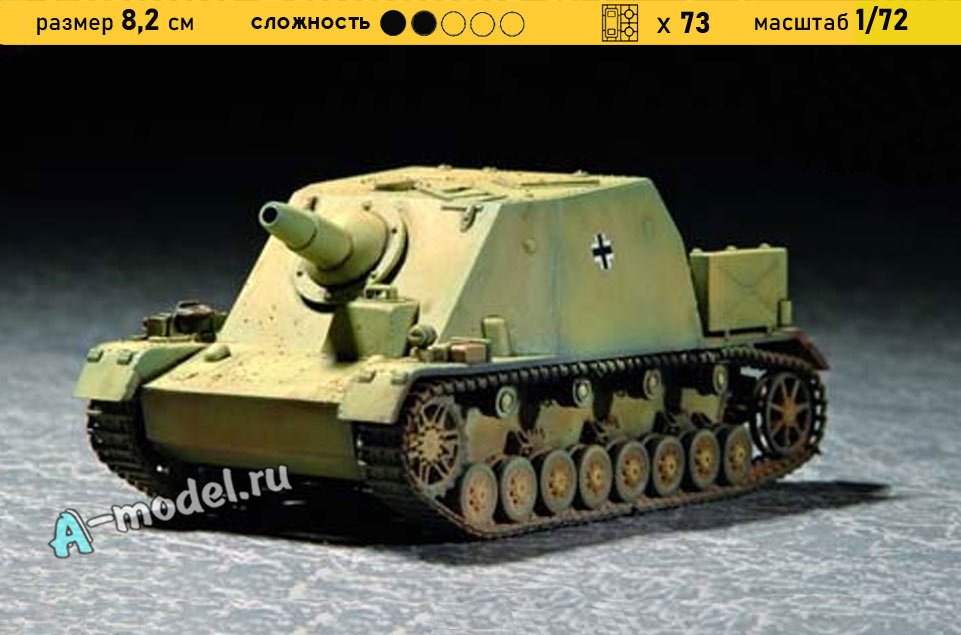 Сборная пластиковая модель штурмового орудия Brummbar в масштабе 1/72 от компании Trumpeter. В комплекте набора с моделью: пластиковые детали, инструкция, декали. Отличное схождение деталей модели и прекрасное их качество помогут получить вам удовольствие и массу положительных эмоций во время сборки. Прекрасным дополнением являются декали идущие в комплекте. Понятная инструкция с крупными рисунками облегчит в понимании моментов сборки. Мы давно сотрудничаем с этим производителем, позиция с товаром оригинальна и всегда готова для покупки. У нас всегда в наличии весь ассортимент продукции. В интернет-магазине представлен ассортимент от множества других компаний связанных с моделизмом. Акции и скидки которые часто проводятся у нас позволят вам приобрести товары нашего магазина по привлекательной цене. Вы всегда можете быстро оформить заказ. Предусмотрены несколько видов оплаты банковскими картами. Ваши заказы отправляем в любую точку России после оплаты, при доставке мы выберем минимальный по цене тариф.