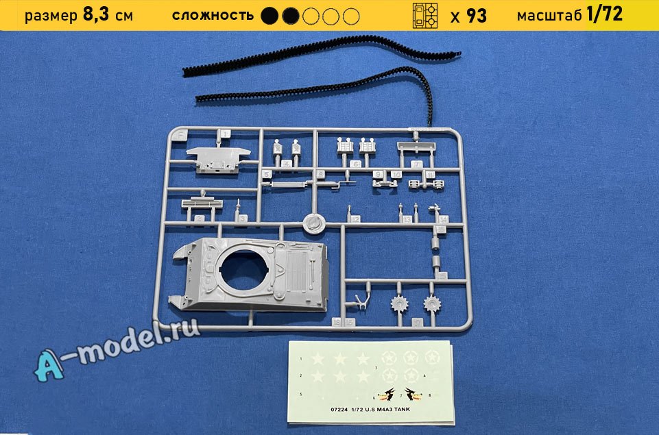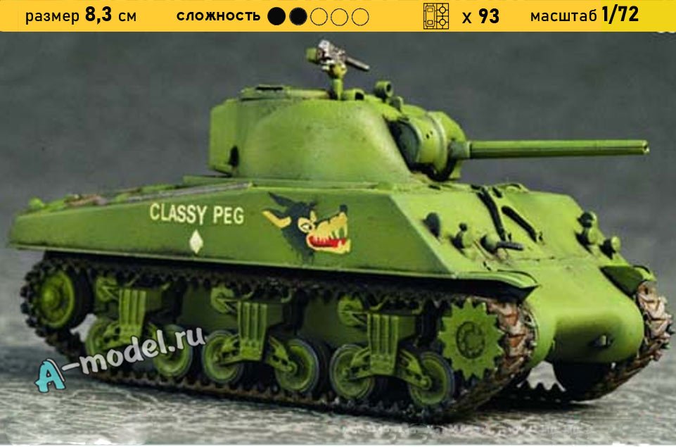 Сборная пластиковая модель танка M4A3 Sherman в масштабе 1/72 от компании Trumpeter. В комплекте набора с моделью: пластиковые детали, инструкция, декали. Отличное схождение деталей модели и прекрасное их качество помогут получить вам удовольствие и массу положительных эмоций во время сборки. Прекрасным дополнением являются декали идущие в комплекте. Понятная инструкция с крупными рисунками облегчит в понимании моментов сборки. Мы давно сотрудничаем с этим производителем, позиция с товаром оригинальна и всегда готова для покупки. У нас всегда в наличии весь ассортимент продукции. В интернет-магазине представлен ассортимент от множества других компаний связанных с моделизмом. Акции и скидки которые часто проводятся у нас позволят вам приобрести товары нашего магазина по привлекательной цене. Вы всегда можете быстро оформить заказ. Предусмотрены несколько видов оплаты банковскими картами. Ваши заказы отправляем в любую точку России после оплаты, при доставке мы выберем минимальный по цене тариф.