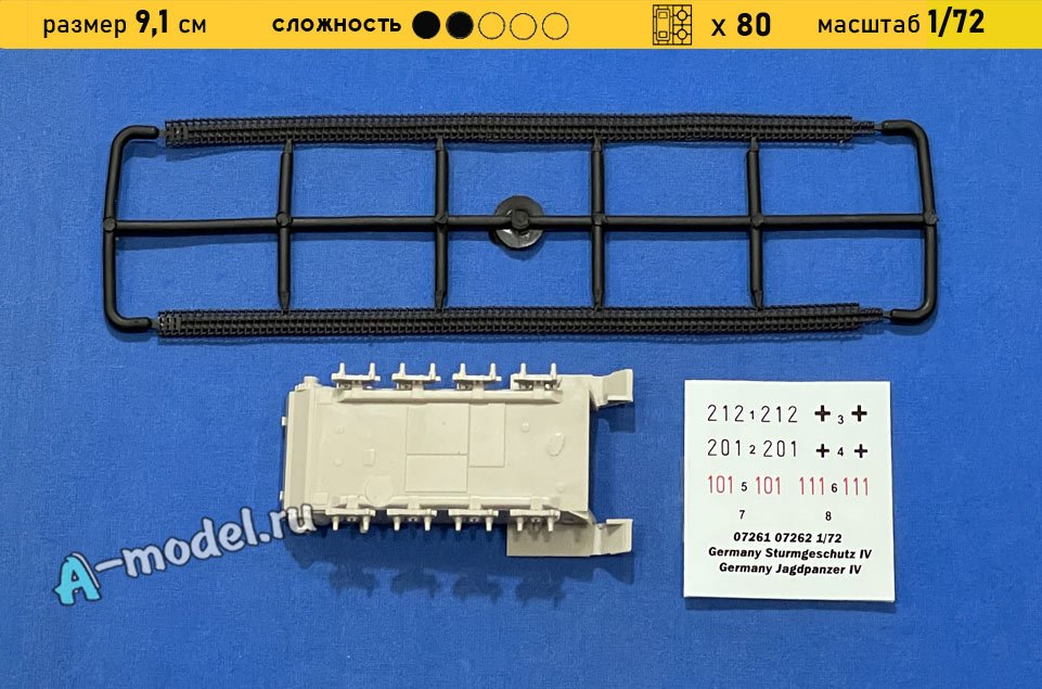 Сборная пластиковая модель САУ Stug IV в масштабе 1/72 от компании Trumpeter. В комплекте набора с моделью: пластиковые детали, инструкция, декали. Отличное схождение деталей модели и прекрасное их качество помогут получить вам удовольствие и массу положительных эмоций во время сборки. Прекрасным дополнением являются декали идущие в комплекте. Понятная инструкция с крупными рисунками облегчит в понимании моментов сборки. Мы давно сотрудничаем с этим производителем, позиция с товаром оригинальна и всегда готова для покупки. У нас всегда в наличии весь ассортимент продукции. В интернет-магазине представлен ассортимент от множества других компаний связанных с моделизмом. Акции и скидки которые часто проводятся у нас позволят вам приобрести товары нашего магазина по привлекательной цене. Вы всегда можете быстро оформить заказ. Предусмотрены несколько видов оплаты банковскими картами. Ваши заказы отправляем в любую точку России после оплаты, при доставке мы выберем минимальный по цене тариф.