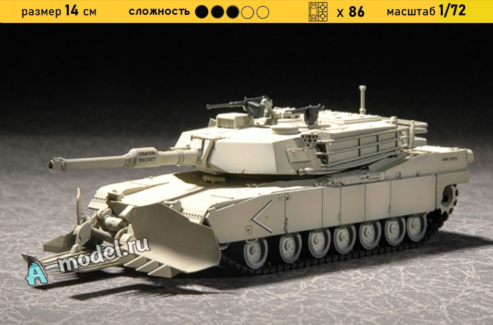 Ñáîðíàÿ ïëàñòèêîâàÿ ìîäåëü áîåâîãî òàíêà Ì1À1 Abrams ñ íîæåâûì ìèííûì òðàëîì â ìàñøòàáå 1/72 îò êîìïàíèè Trumpeter.  êîìïëåêòå íàáîðà ñ ìîäåëüþ: ïëàñòèêîâûå äåòàëè, èíñòðóêöèÿ, äåêàëè. Îòëè÷íîå ñõîæäåíèå äåòàëåé ìîäåëè è ïðåêðàñíîå èõ êà÷åñòâî ïîìîãóò ïîëó÷èòü âàì óäîâîëüñòâèå è ìàññó ïîëîæèòåëüíûõ ýìîöèé âî âðåìÿ ñáîðêè. Ïðåêðàñíûì äîïîëíåíèåì ÿâëÿþòñÿ äåêàëè èäóùèå â êîìïëåêòå. Ïîíÿòíàÿ èíñòðóêöèÿ ñ êðóïíûìè ðèñóíêàìè îáëåã÷èò â ïîíèìàíèè ìîìåíòîâ ñáîðêè. Ìû äàâíî ñîòðóäíè÷àåì ñ ýòèì ïðîèçâîäèòåëåì, ïîçèöèÿ ñ òîâàðîì îðèãèíàëüíà è âñåãäà ãîòîâà äëÿ ïîêóïêè. Ó íàñ âñåãäà â íàëè÷èè âåñü àññîðòèìåíò ïðîäóêöèè.  èíòåðíåò-ìàãàçèíå ïðåäñòàâëåí àññîðòèìåíò îò ìíîæåñòâà äðóãèõ êîìïàíèé ñâÿçàííûõ ñ ìîäåëèçìîì. Àêöèè è ñêèäêè êîòîðûå ÷àñòî ïðîâîäÿòñÿ ó íàñ ïîçâîëÿò âàì ïðèîáðåñòè òîâàðû íàøåãî ìàãàçèíà ïî ïðèâëåêàòåëüíîé öåíå. Âû âñåãäà ìîæåòå áûñòðî îôîðìèòü çàêàç. Ïðåäóñìîòðåíû íåñêîëüêî âèäîâ îïëàòû áàíêîâñêèìè êàðòàìè. Âàøè çàêàçû îòïðàâëÿåì â ëþáóþ òî÷êó Ðîññèè ïîñëå îïëàòû, ïðè äîñòàâêå ìû âûáåðåì ìèíèìàëüíûé ïî öåíå òàðèô.